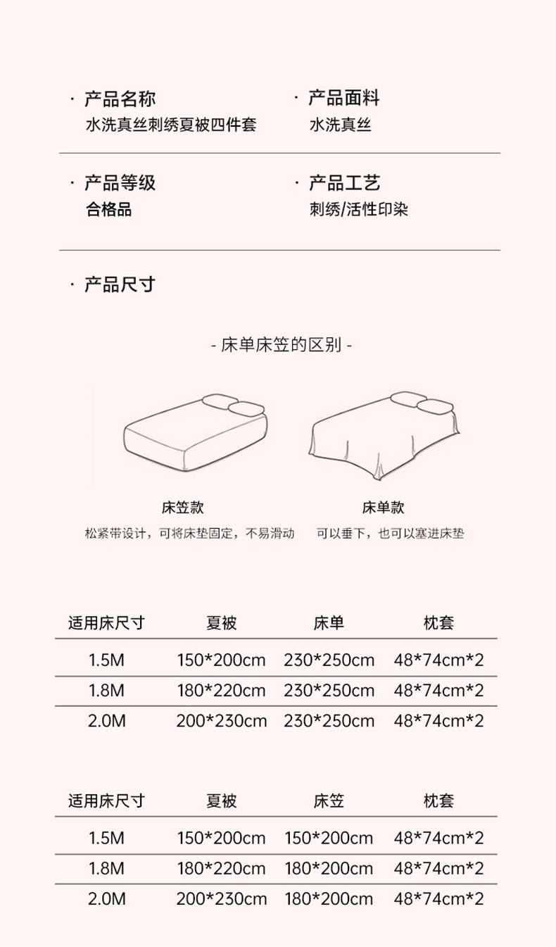 | 200 * 230cm summer quilt four-piece set [summer quilt +1.8 fitted sheet + pillowcase * 2 pcs]] | CN¥ 108.06 | 1524 bed available |