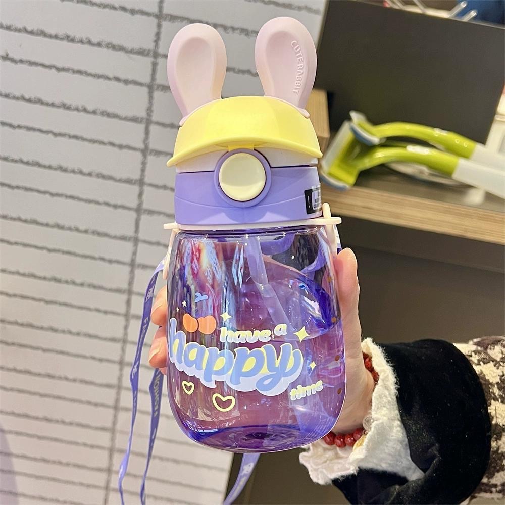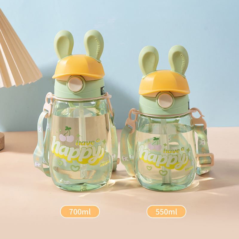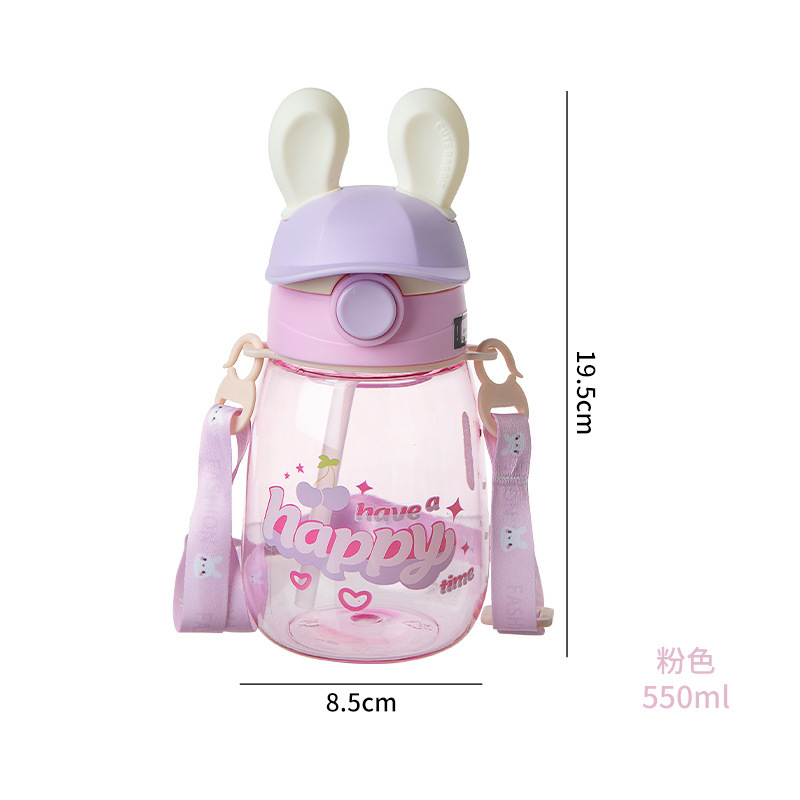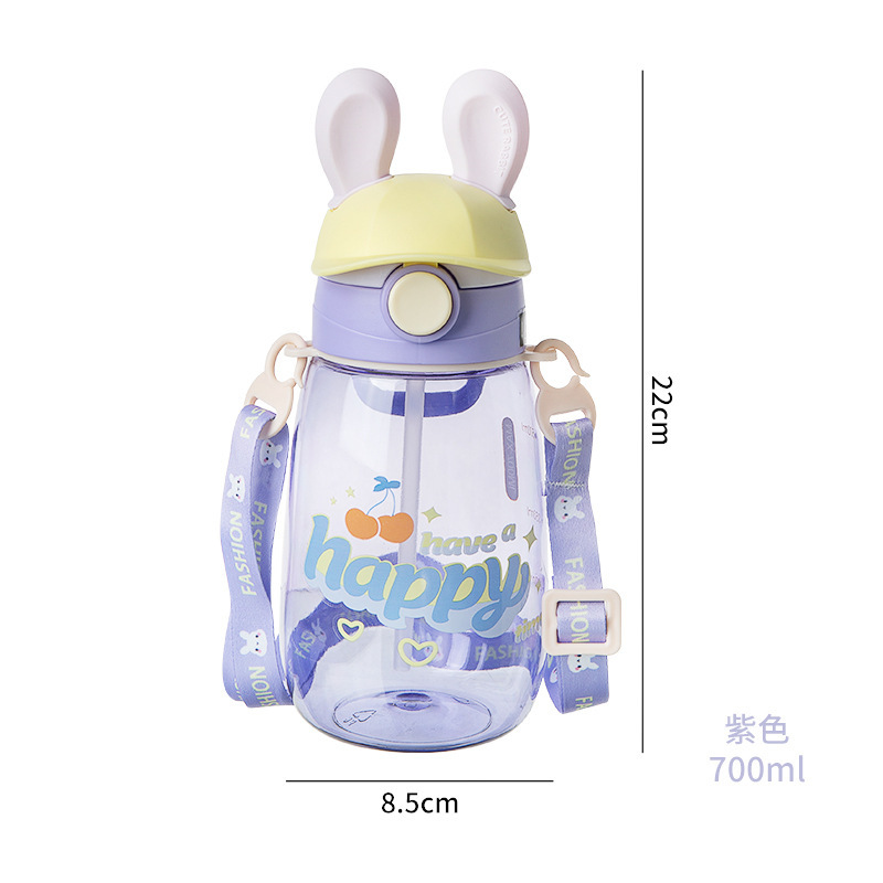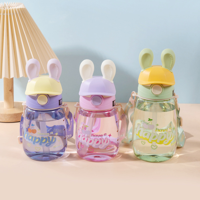 summer good-looking bunny water cup children's cute straw cup kindergarten crossbody strap portable plastic cup