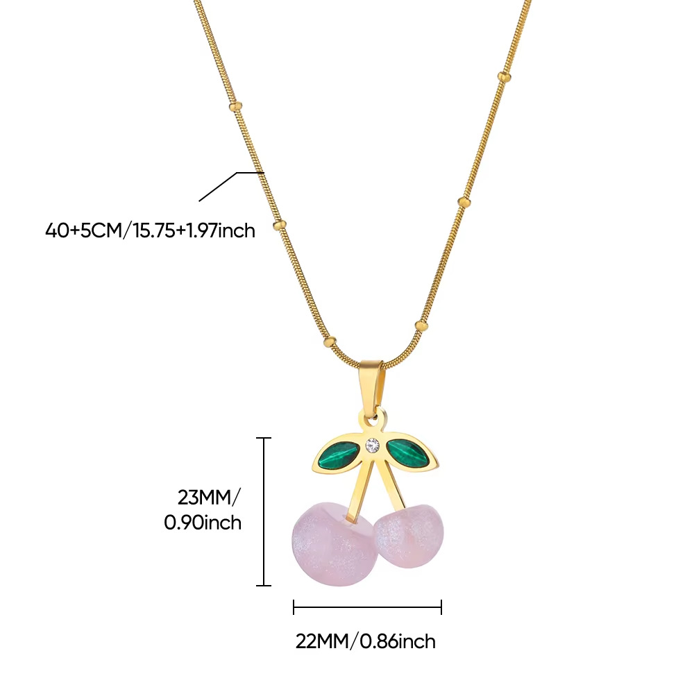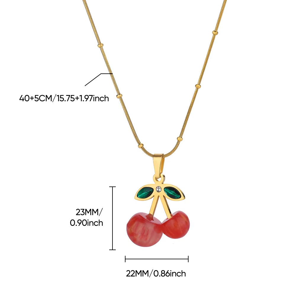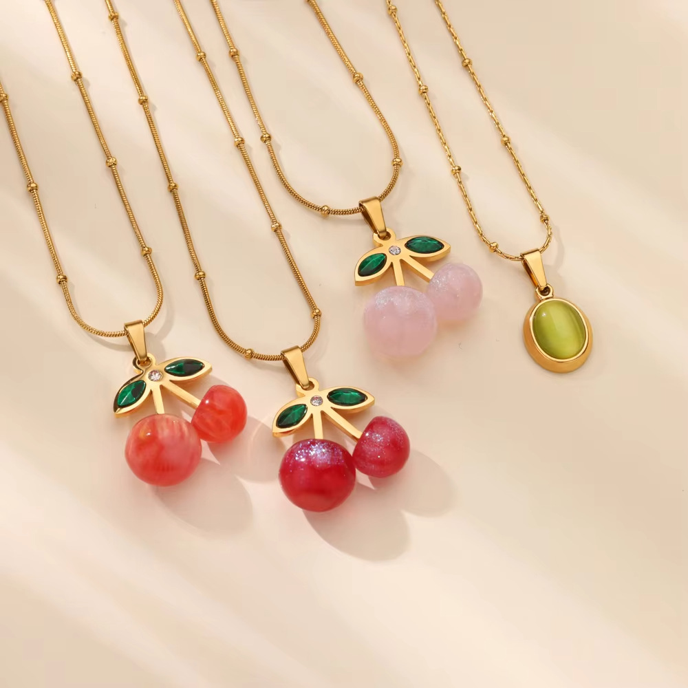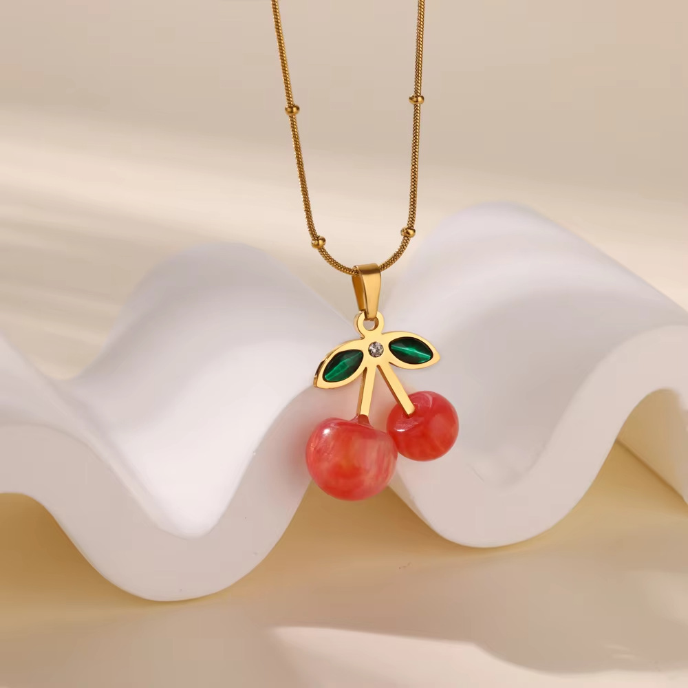 fresh sweet cherry color strawberry titanium steel necklace pendant female bead love stainless steel clavicle chain