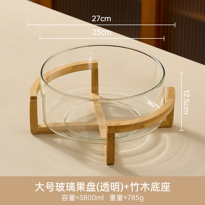 large bamboo frame glass fruit plate (transparent)
