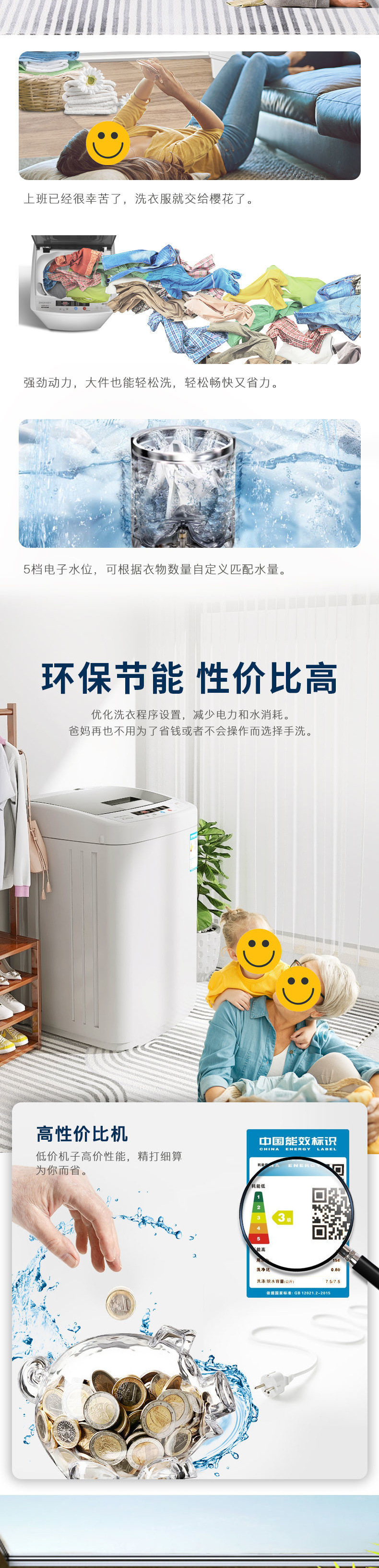 7.5kg blue light washing and protection air drying + strong decontamination anti-winding