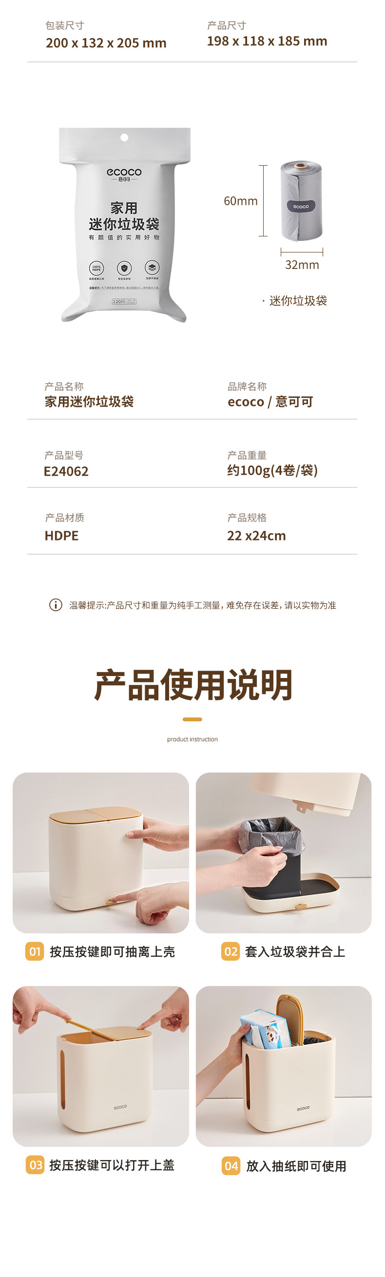 mini garbage bag 1 pack (4 rolls = 120)