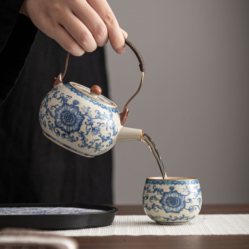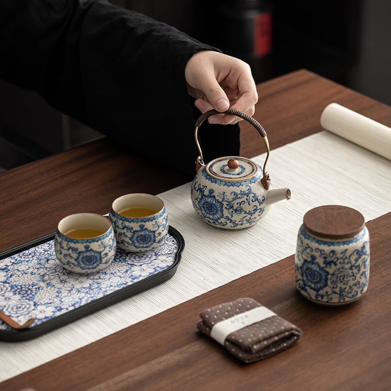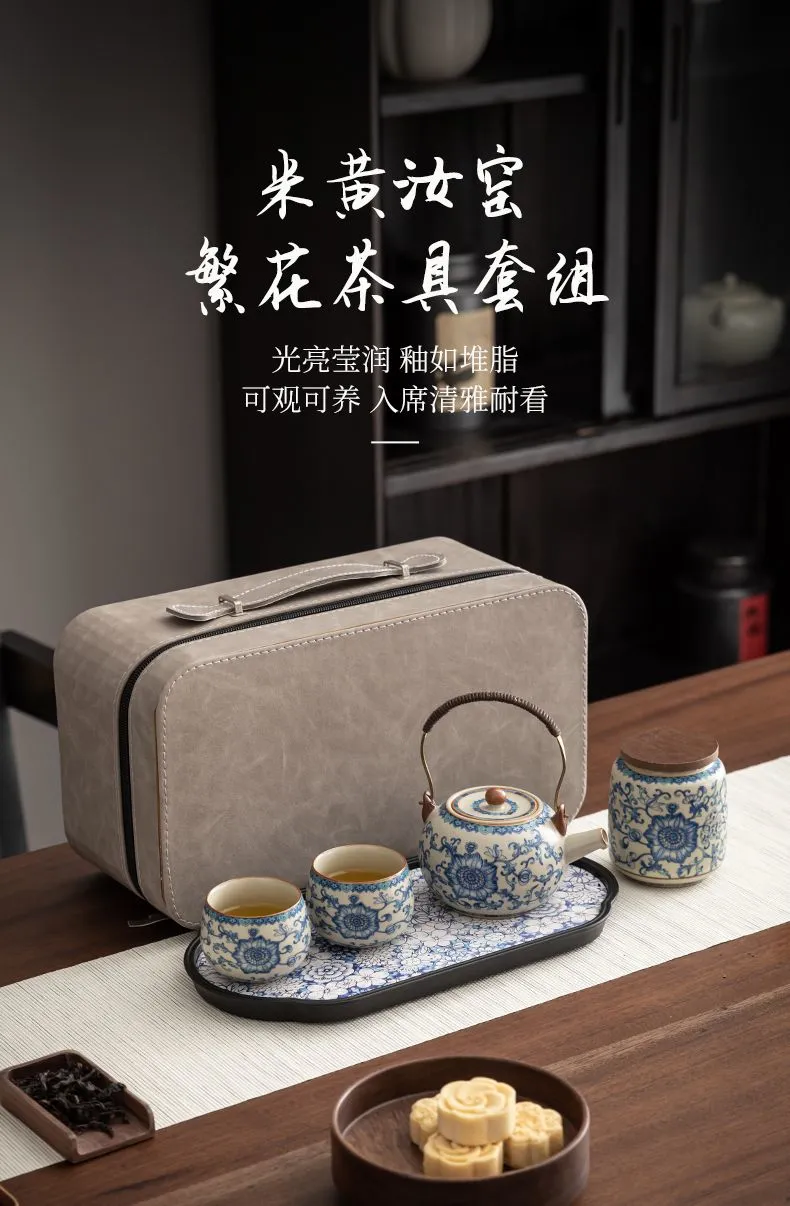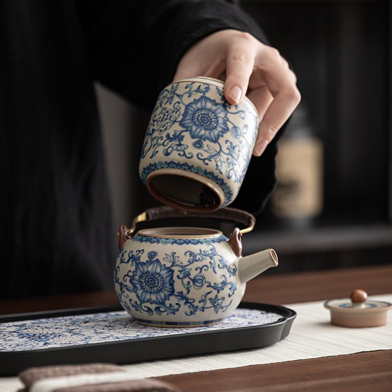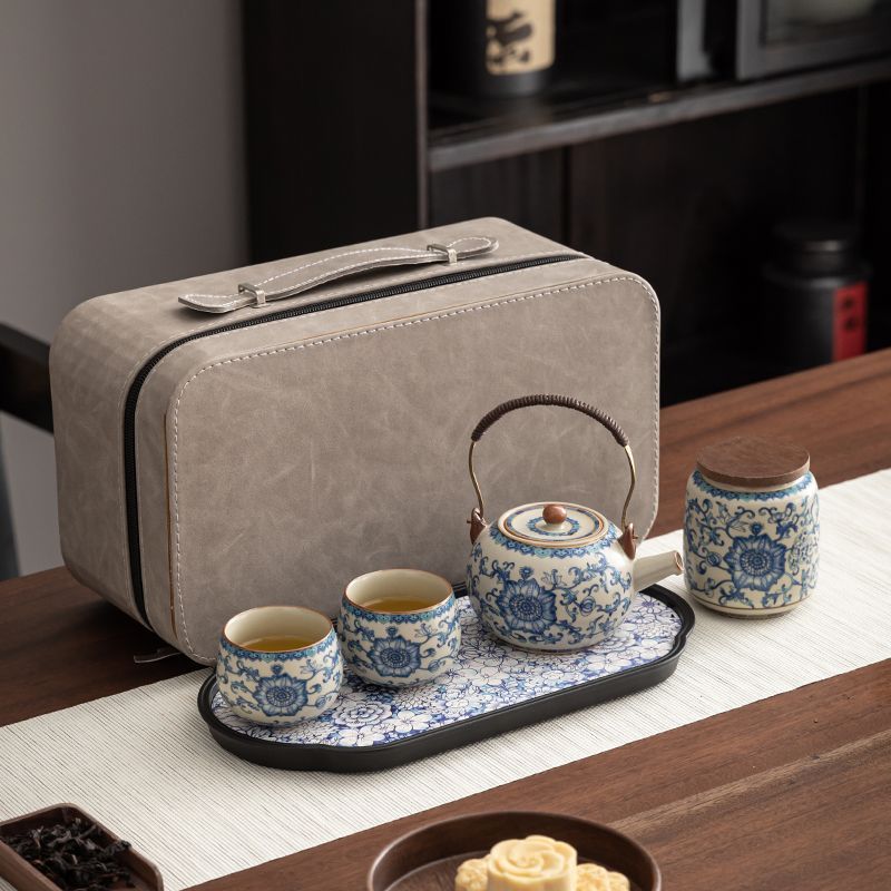 | blue and white lifting handle cylinder bottle (one pot four cups) + blue and white tea tray/hard gray bag | CN¥ 150.53 | 999999 piece available |
