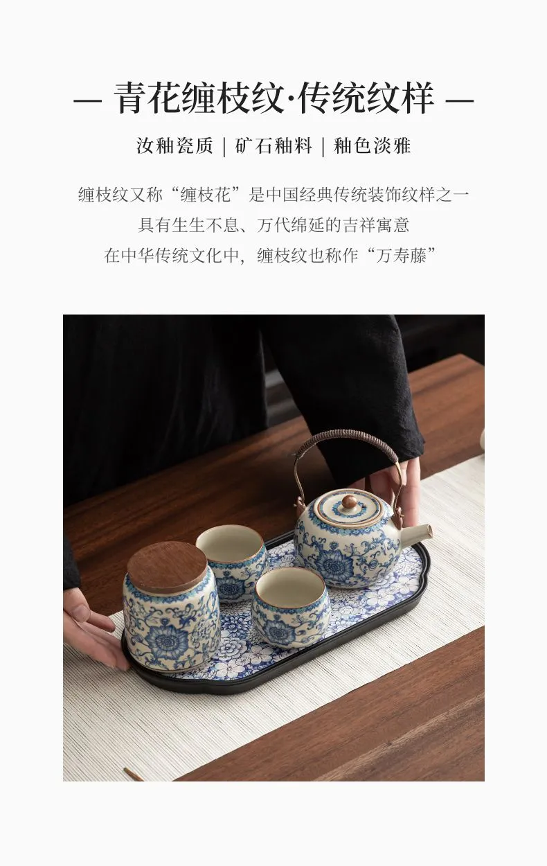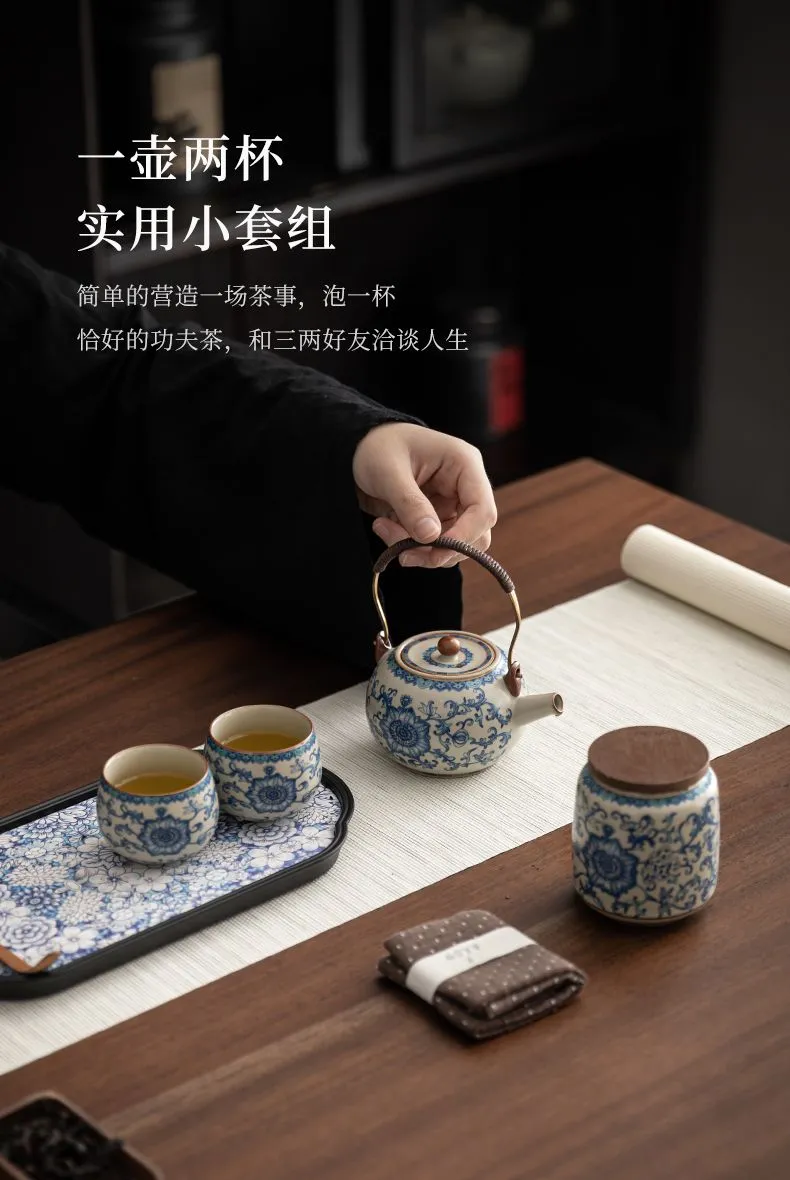 | blue and white archaized pot (one pot four cups) + blue and white tea tray/hard gray bag | CN¥ 138.77 | 999999 piece available |