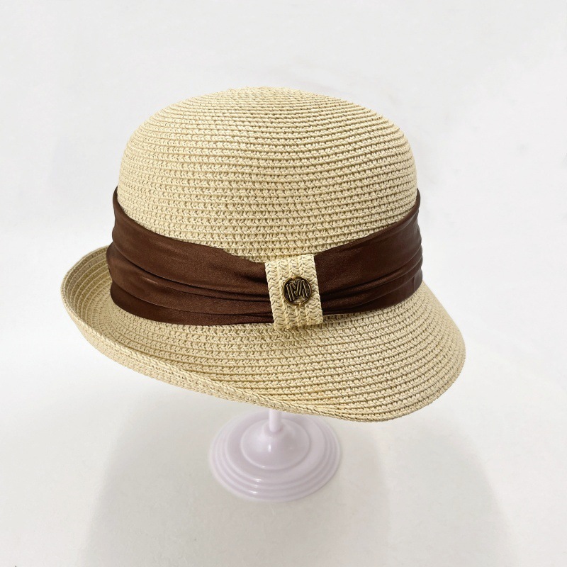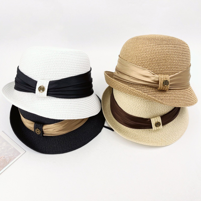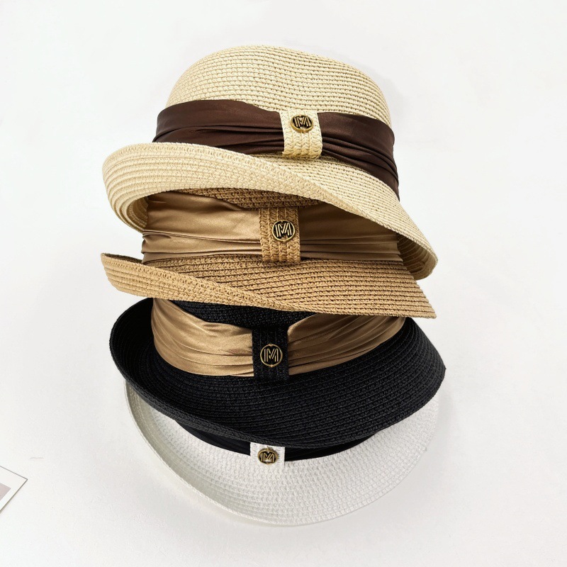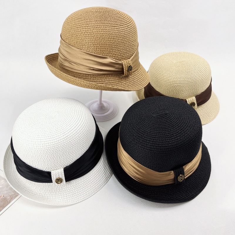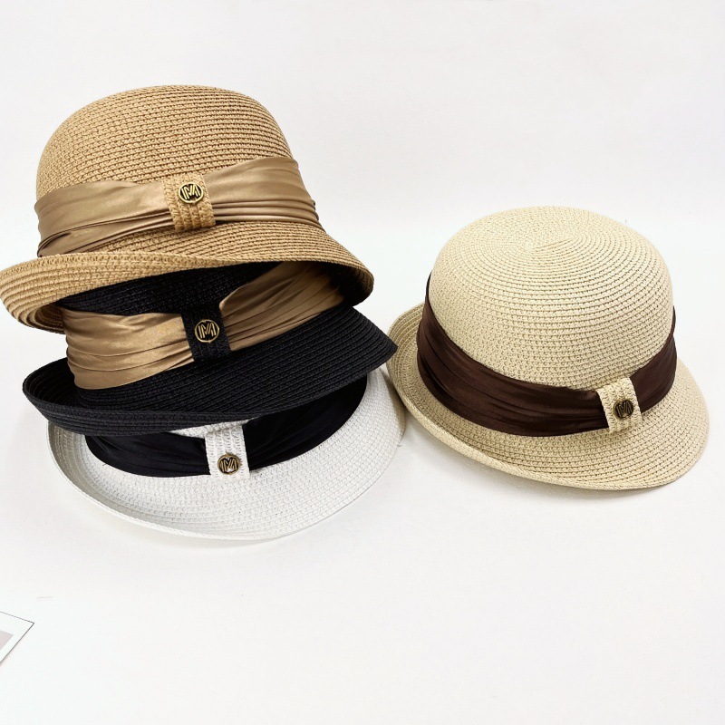 summer straw hat women's retro curling sun hat breathable sun protection straw hat show face small high density version bucket hat tide