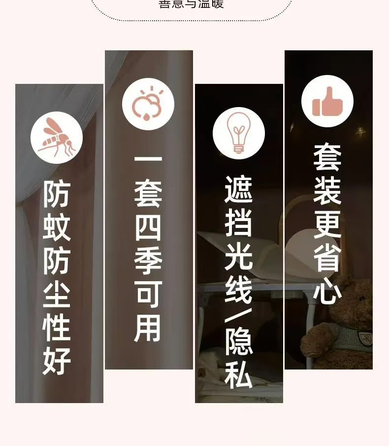 | bed curtain [two pieces + top + telescopic bracket] 1.2 m high half pack | CN¥ 130.85 | 999999 piece available |