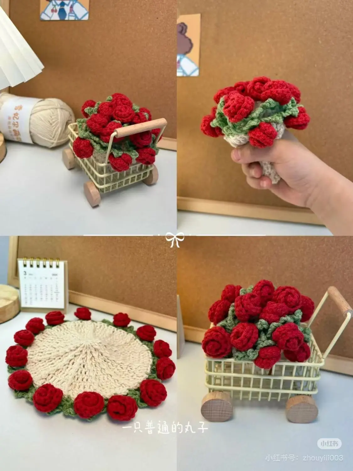 handmade wool diy rose bouquet coaster material package crocheted coaster change hand bouquet creative gift weaving