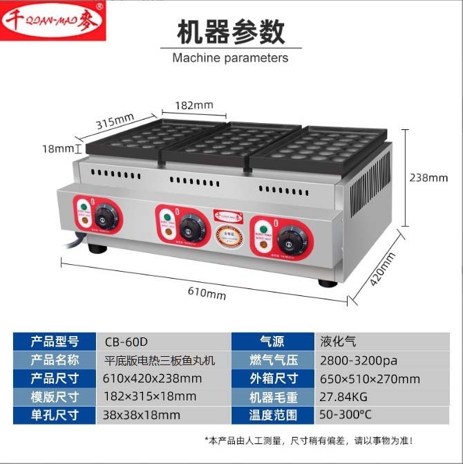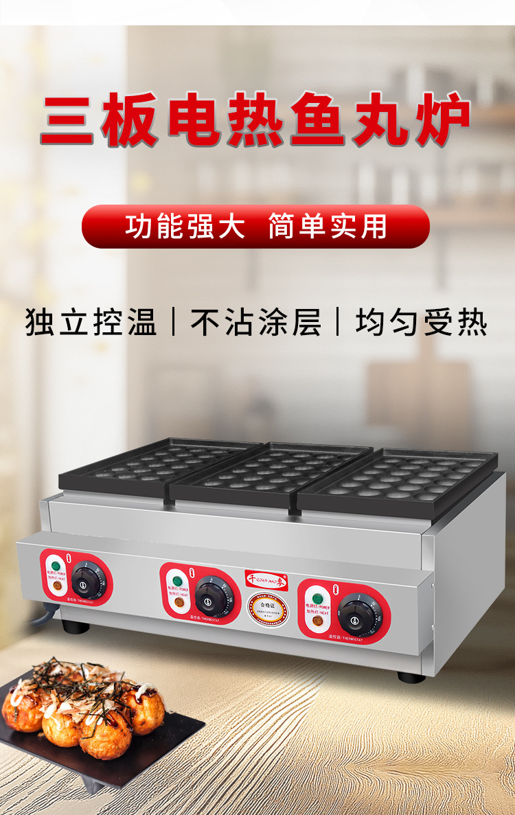 cb-60d flat three-plate electric heating fish ball stove (accurate temperature control)