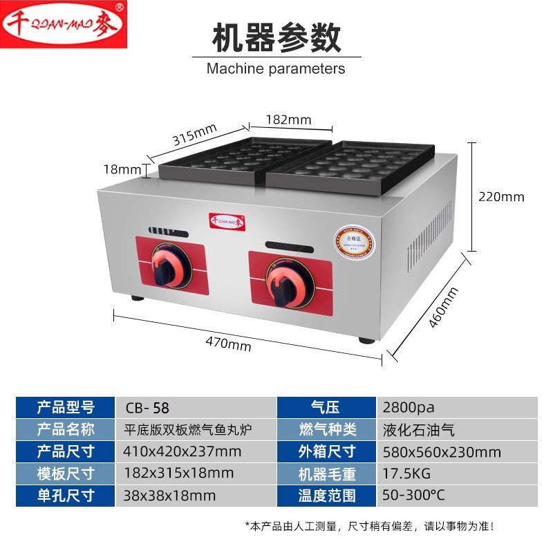 cb-58 flat bottom gas two plates fish ball stove (accurate temperature control)