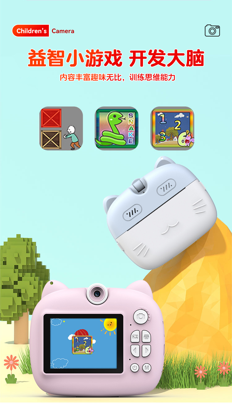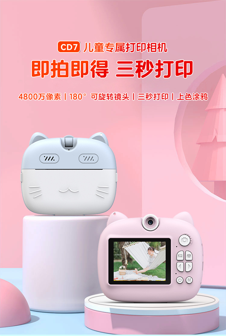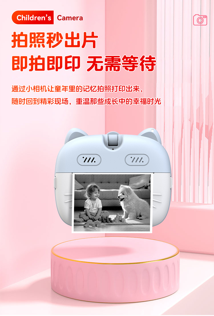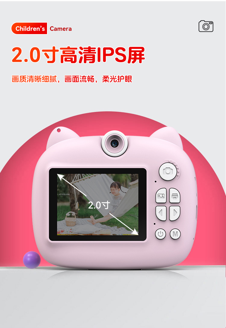 children's printing camera pink + memory card 32g