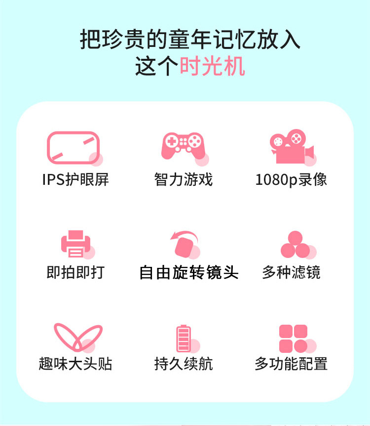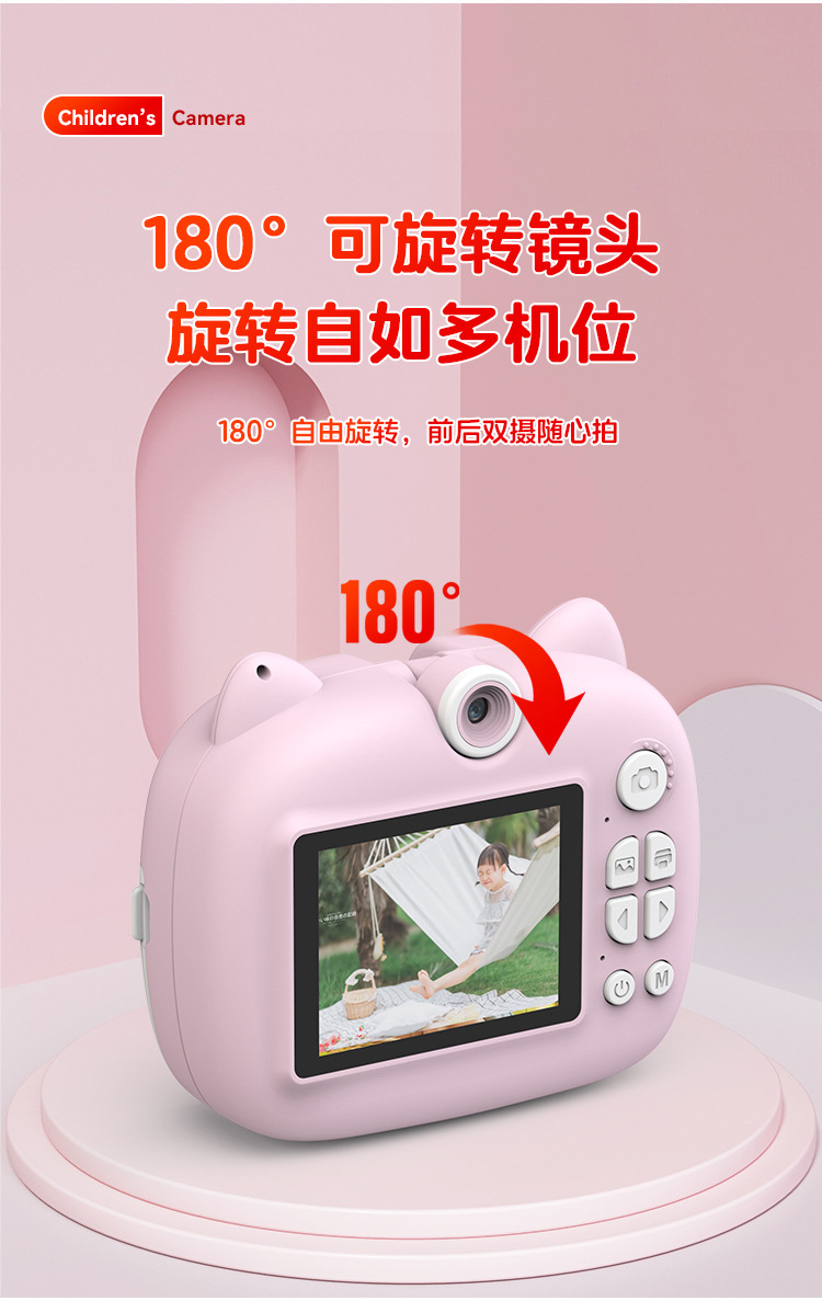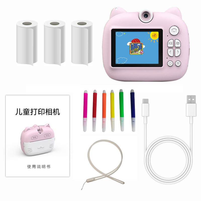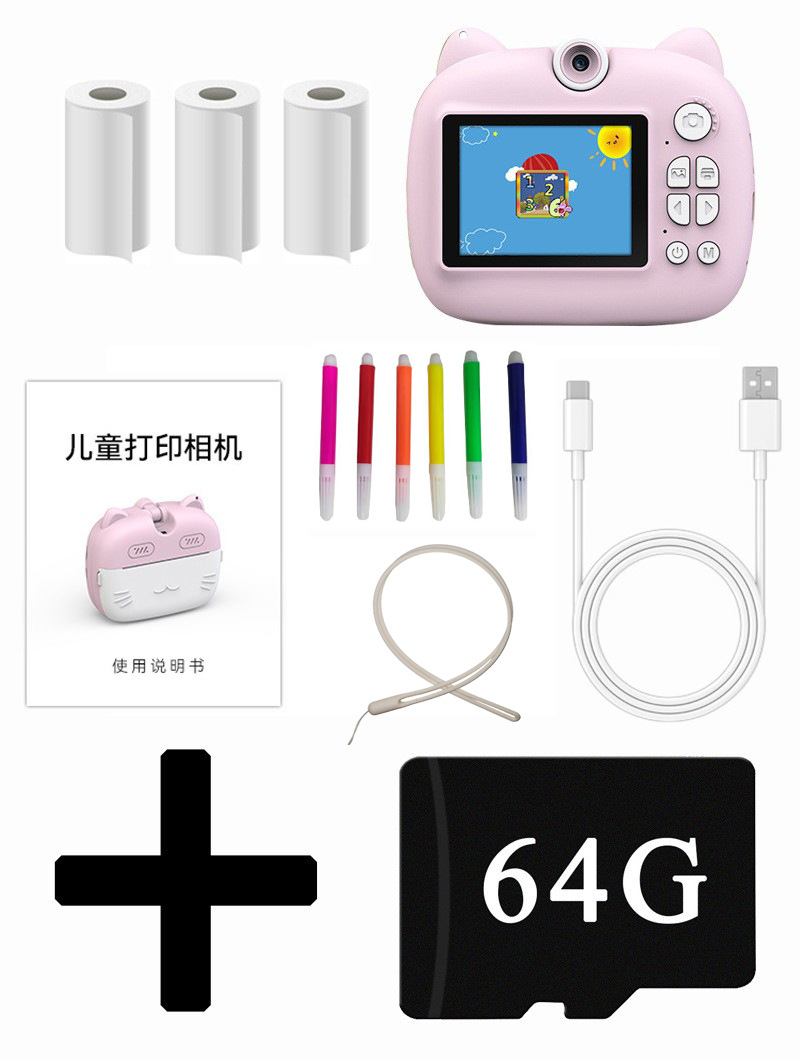 children's printing camera pink + memory card 64g