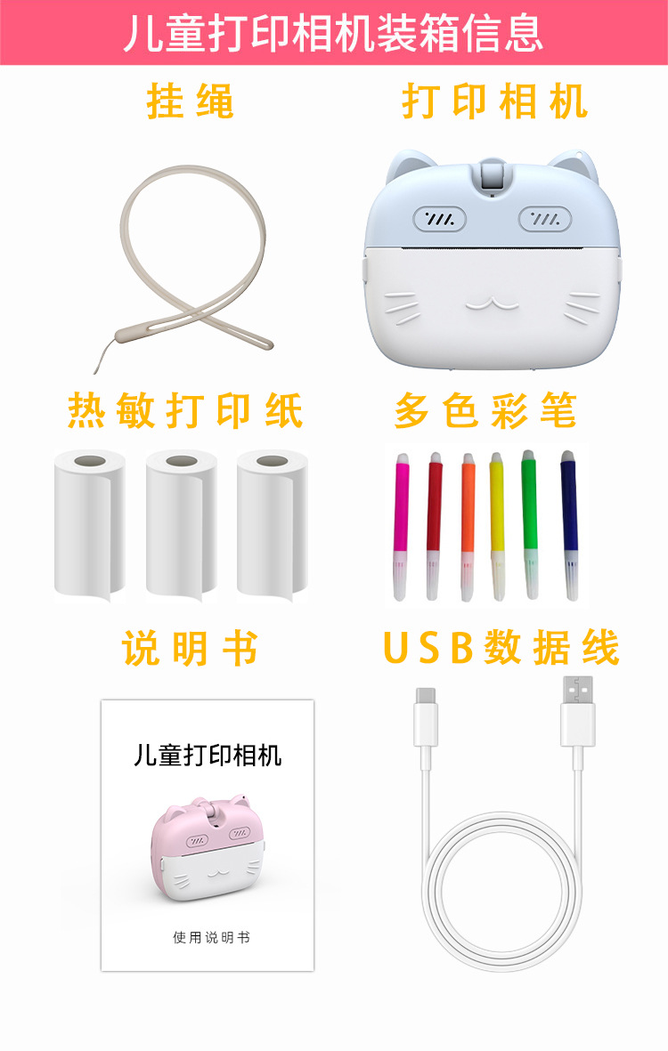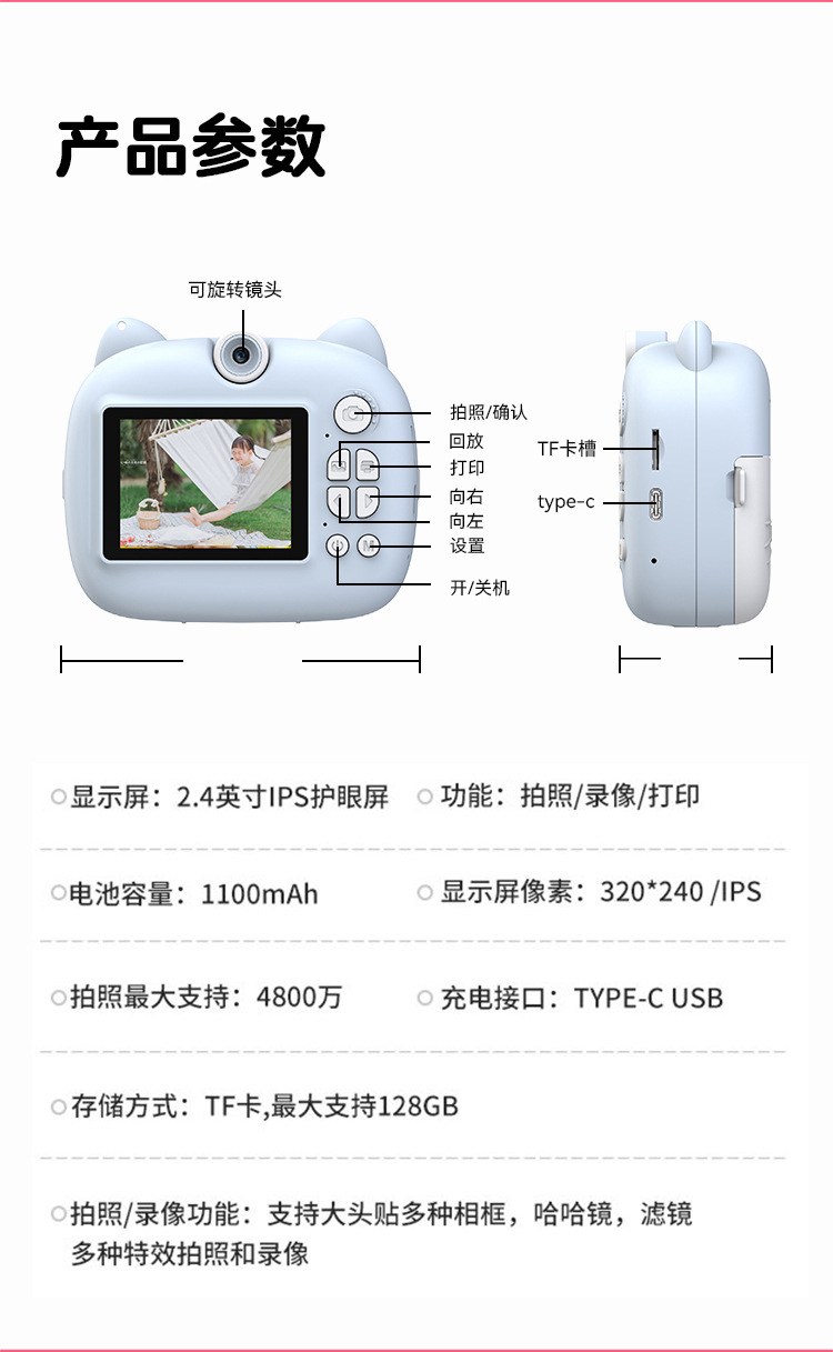 children's printing camera blue + memory card 64g