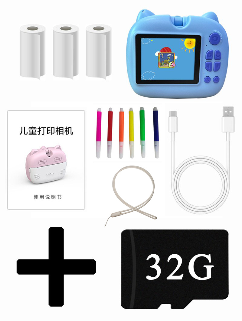 children's printing camera blue + memory card 32g