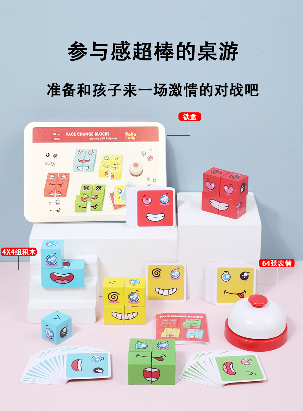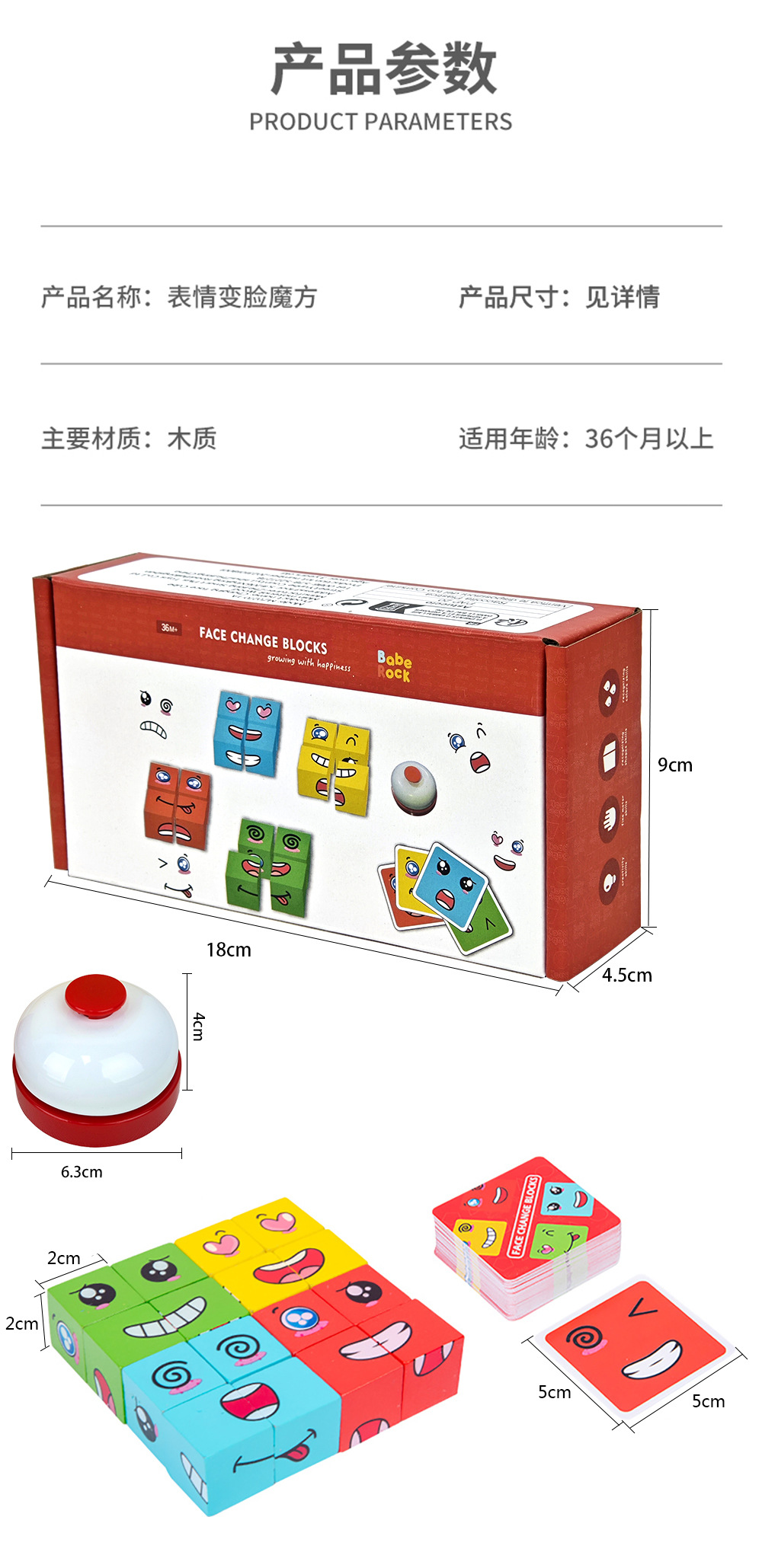 boxed large face-changing cube + game bell (60 pieces per box)