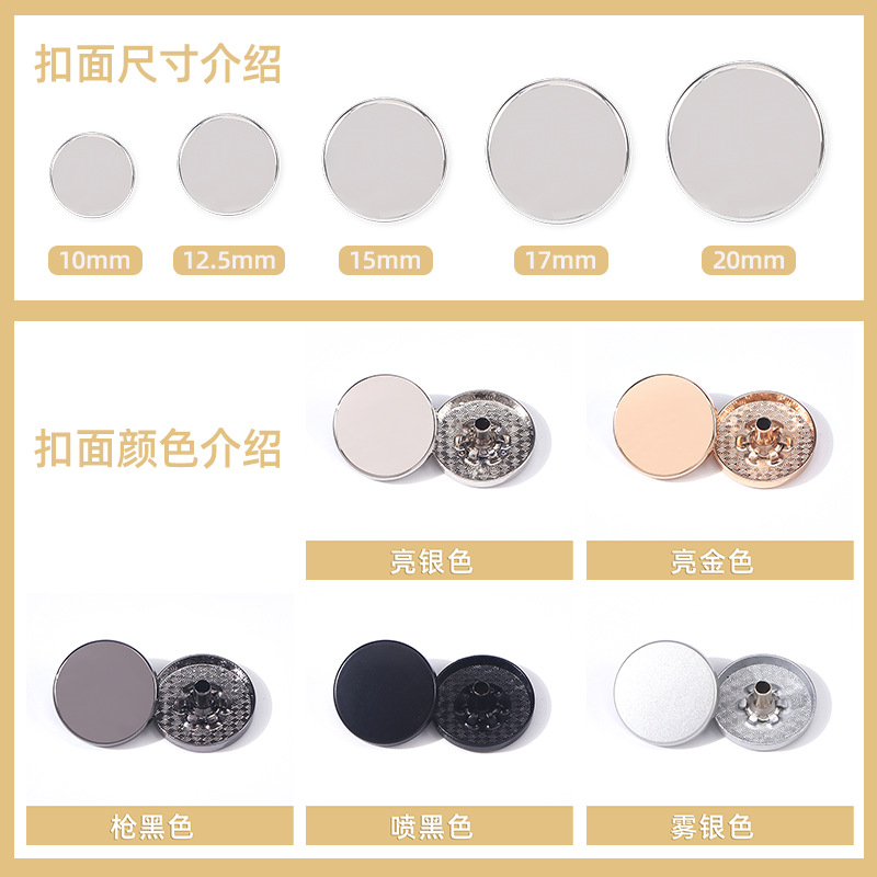 zinc alloy button panel metal snap fastener hidden hook sewing free high-grade thick matte black, colors four-in-one buttons