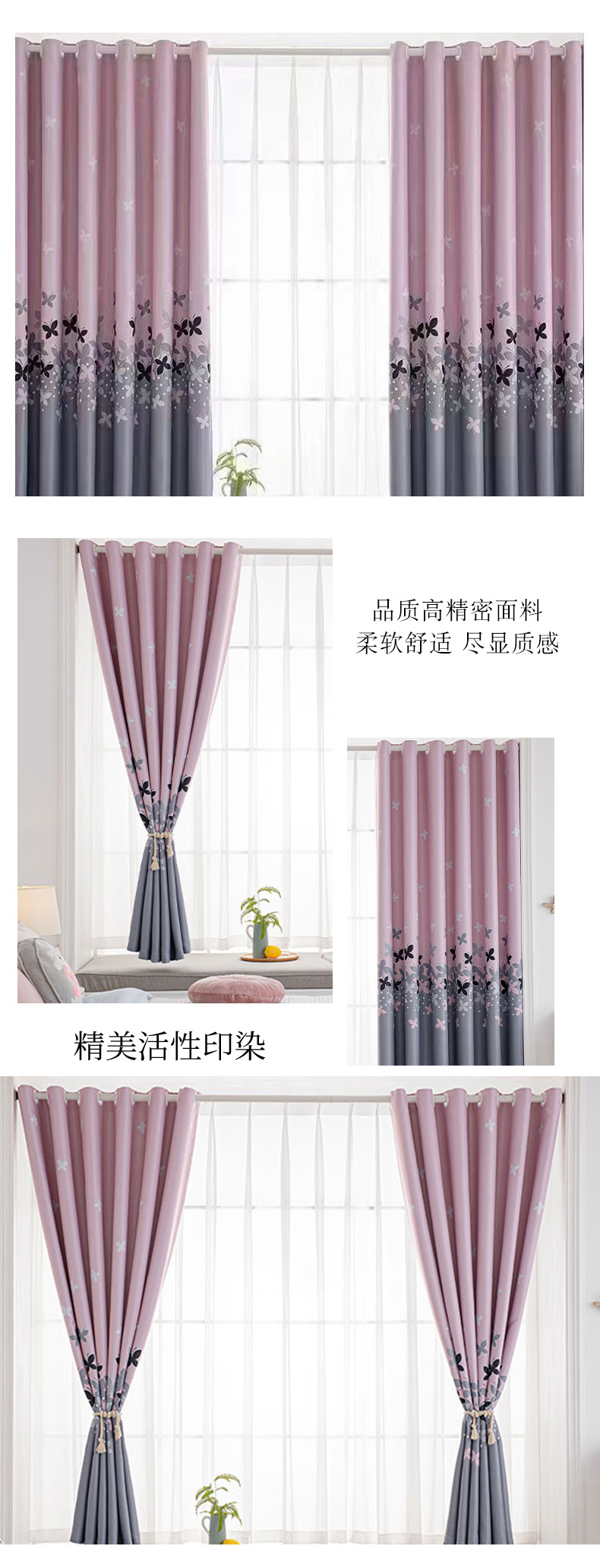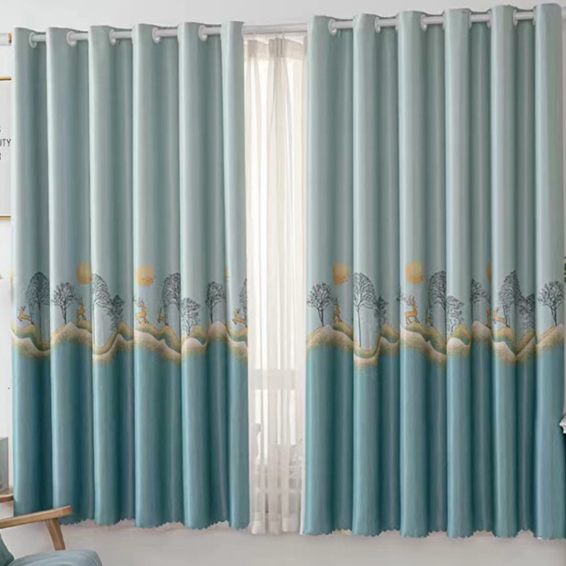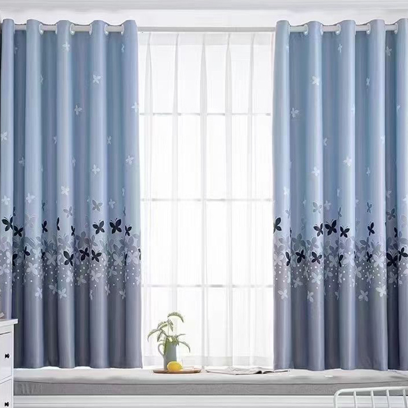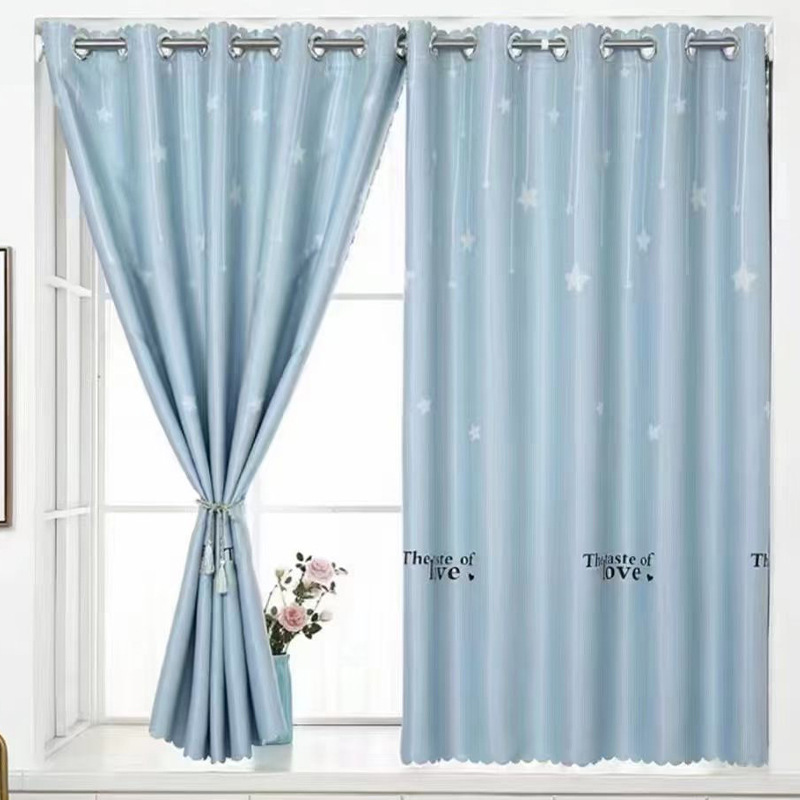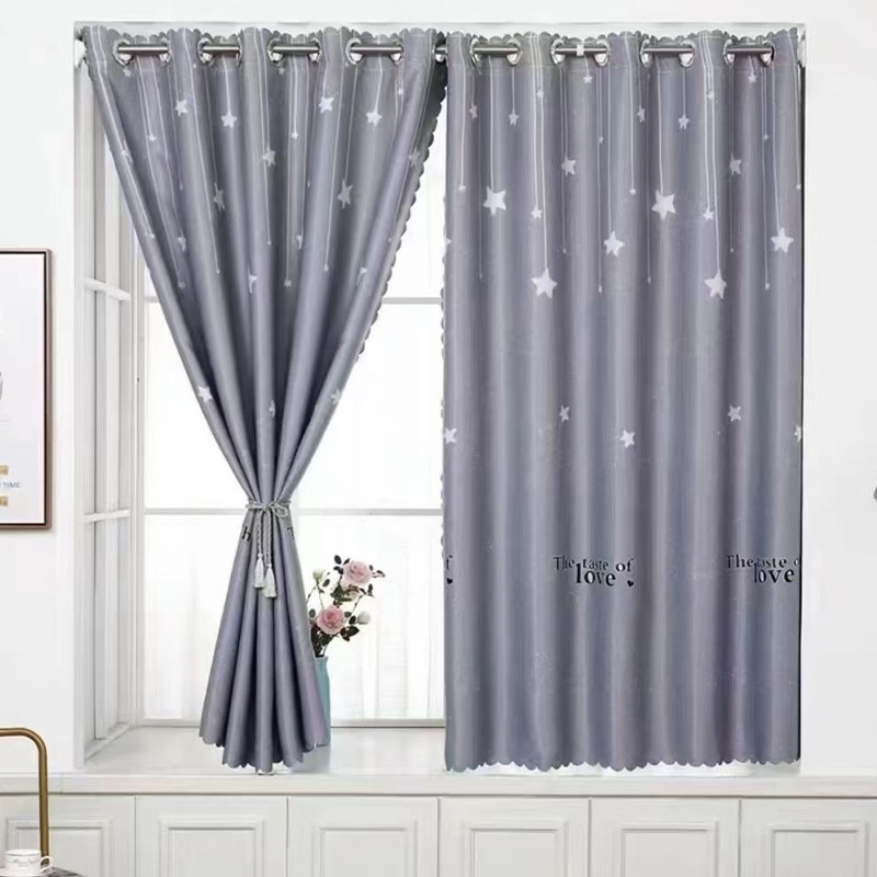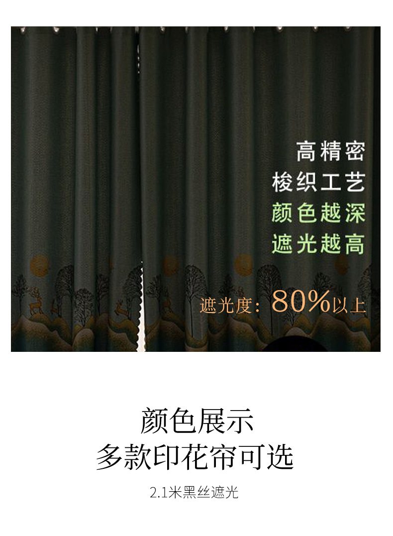 2024 new curtain 2.6 m short curtain black silk shading finished simple modern bedroom living room punch-free bay window