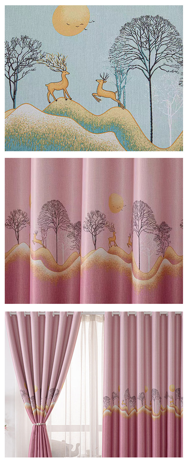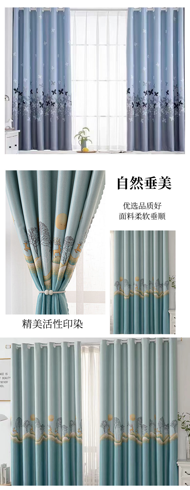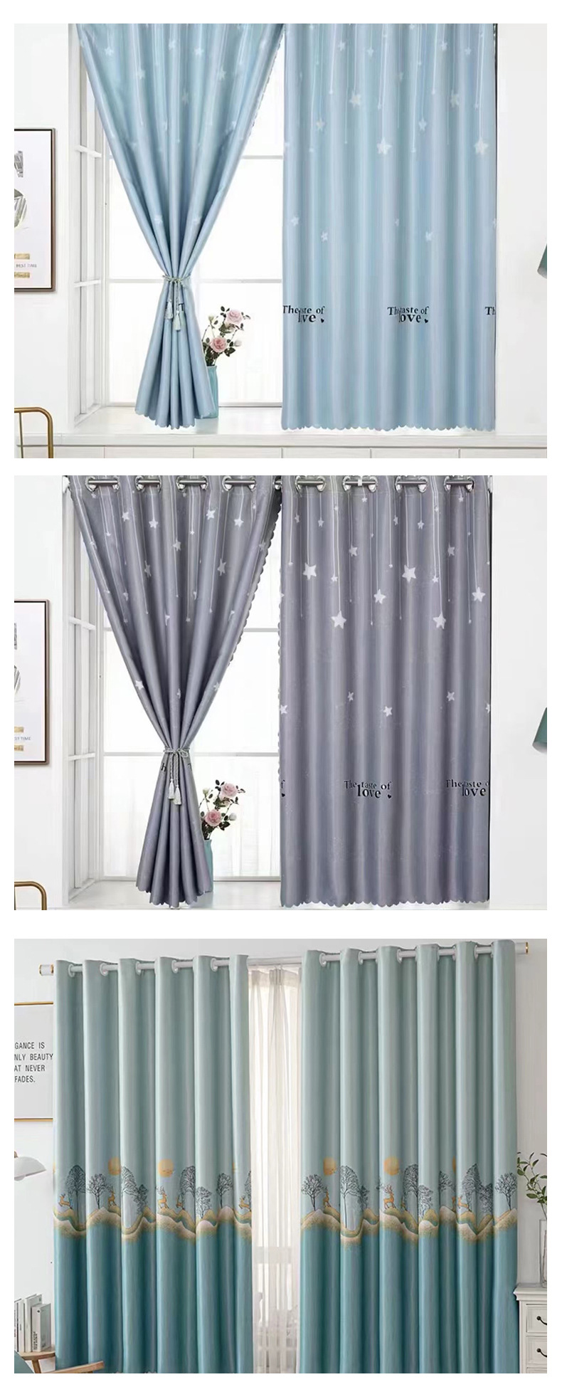 2024 new curtain 2.6 m short curtain black silk shading finished simple modern bedroom living room punch-free bay window