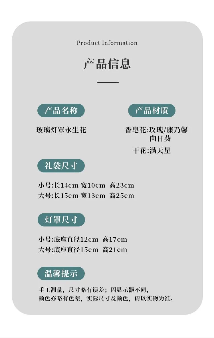 | love. small size-single flower without glass cover | CN¥ 21.17 | 999999 piece available |