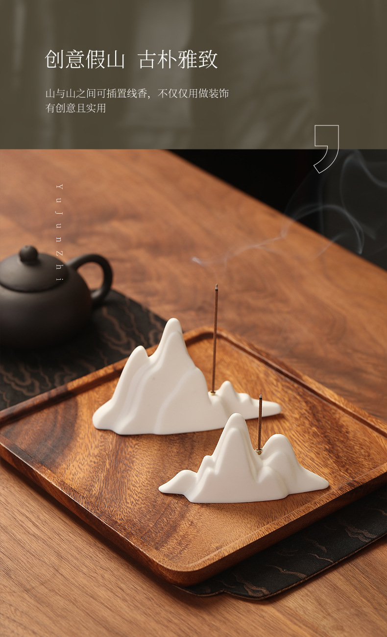 white porcelain mountain view line incense burner-small size