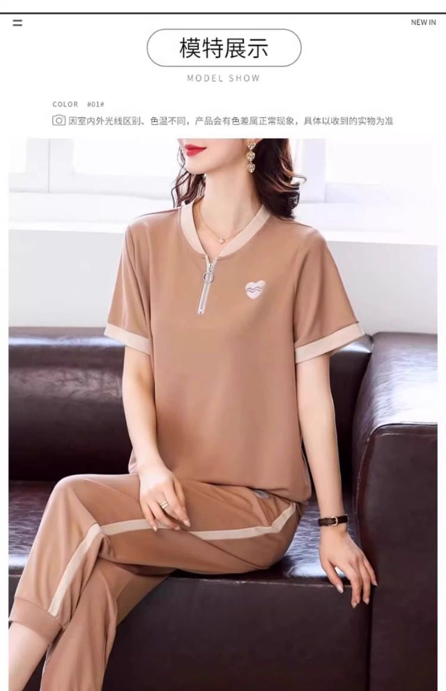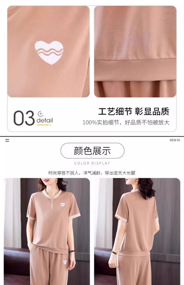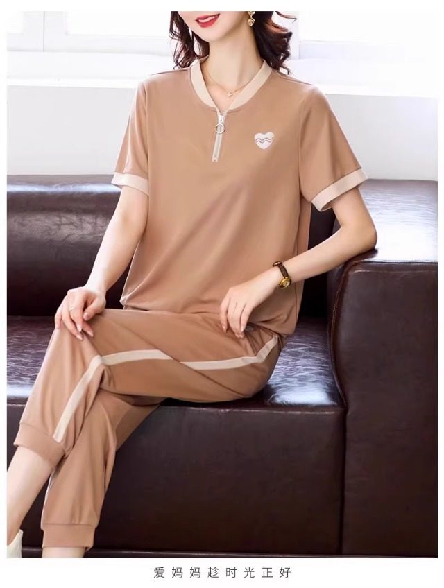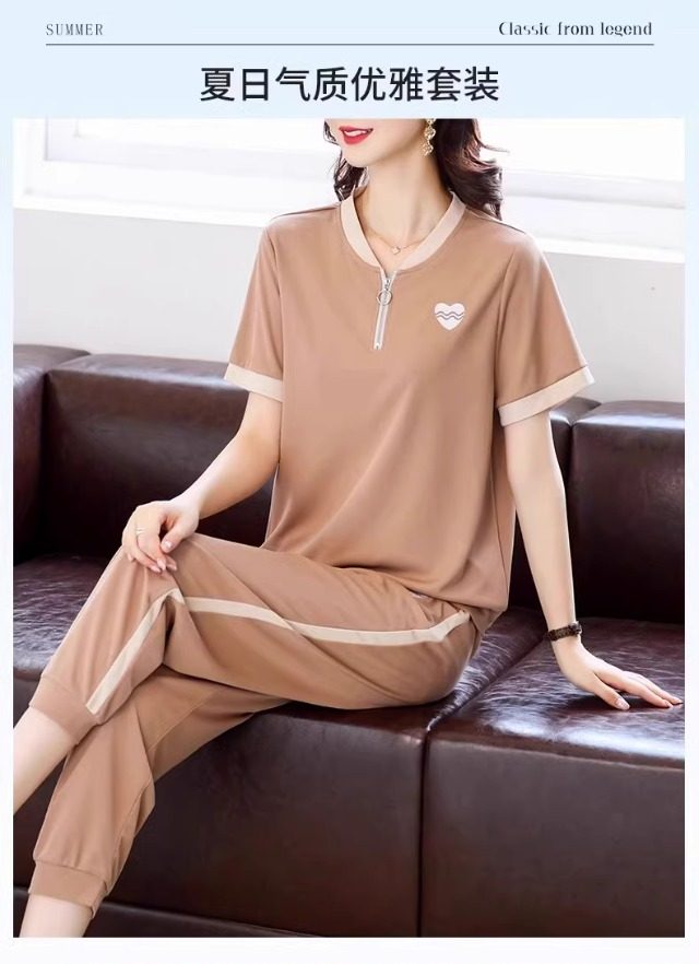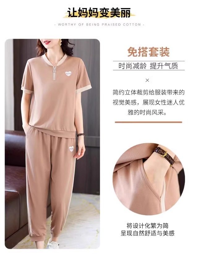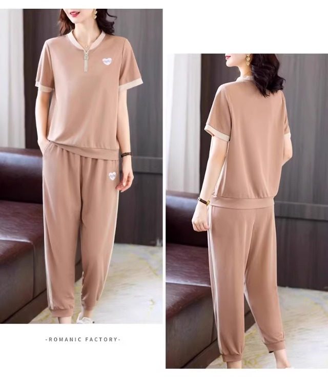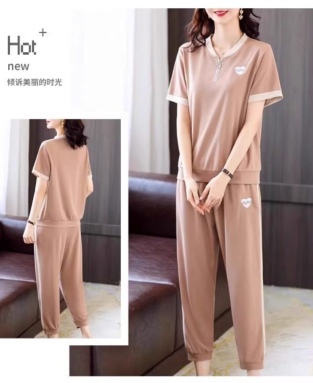 casual sports suit women's summer new western style youthful-looking comfortable thin short sleeve matching cropped pants two-piece set