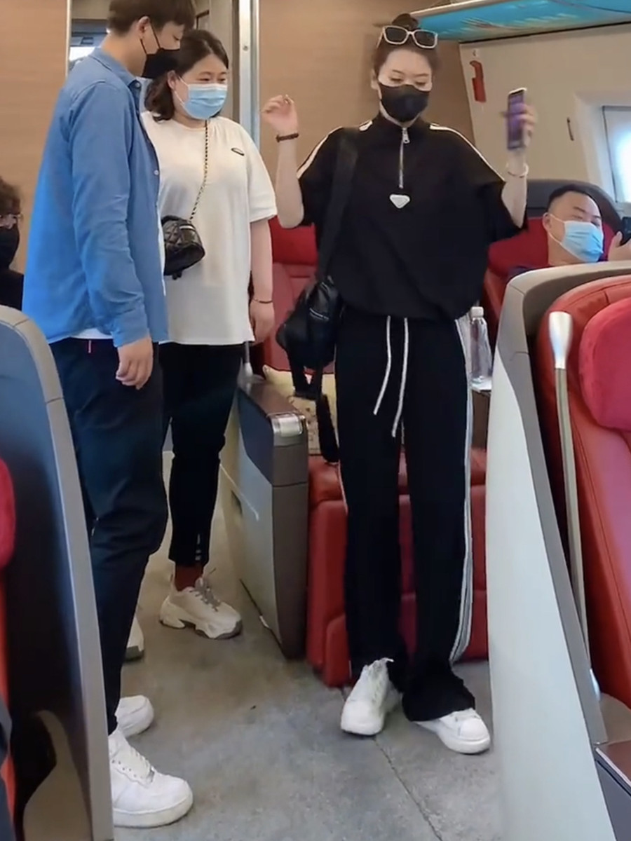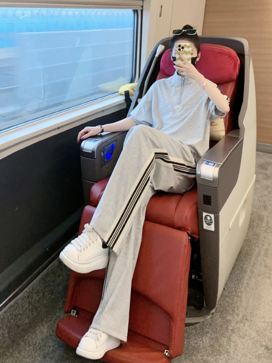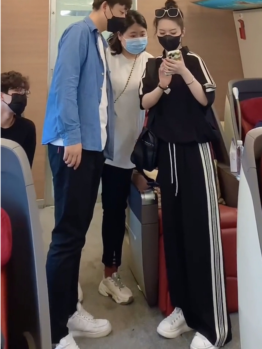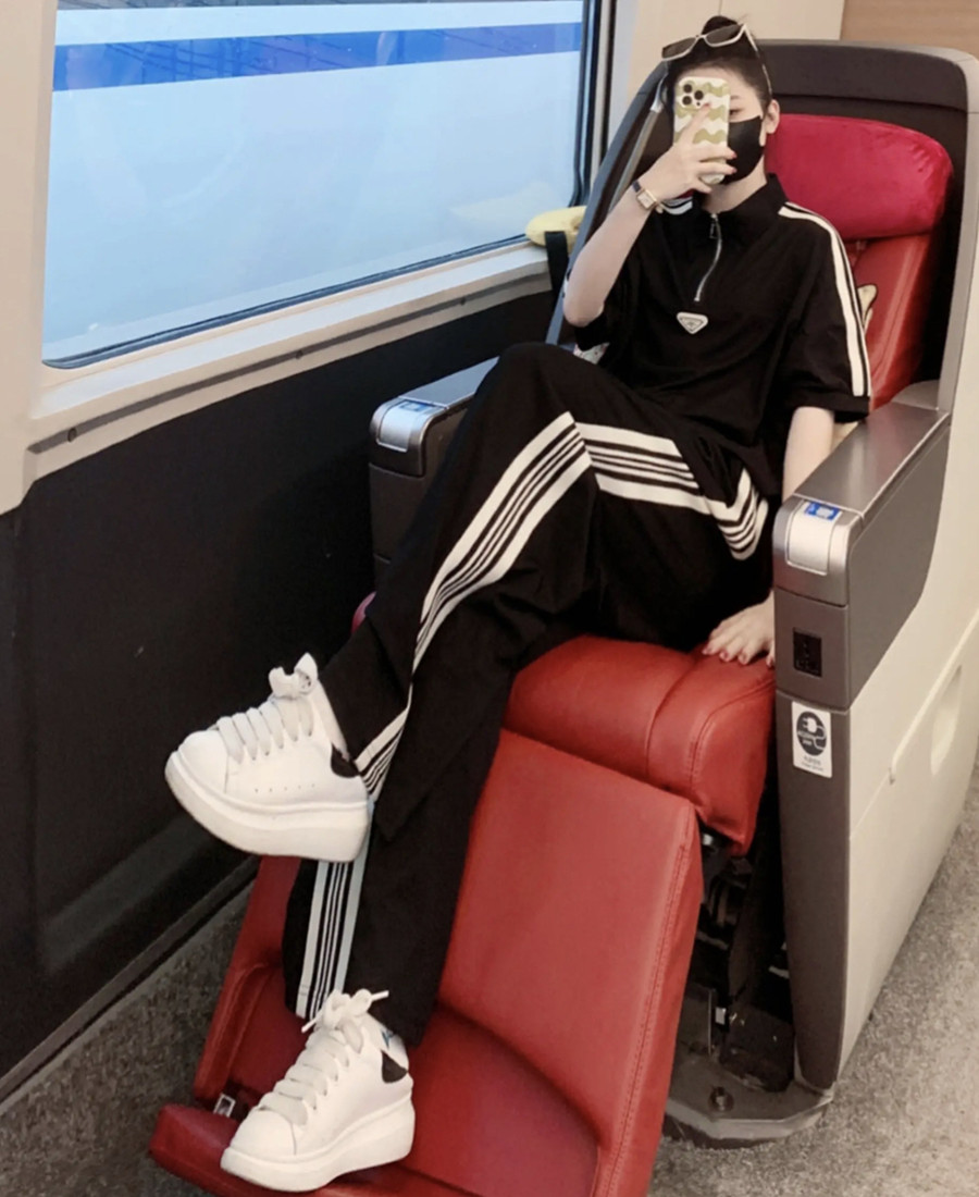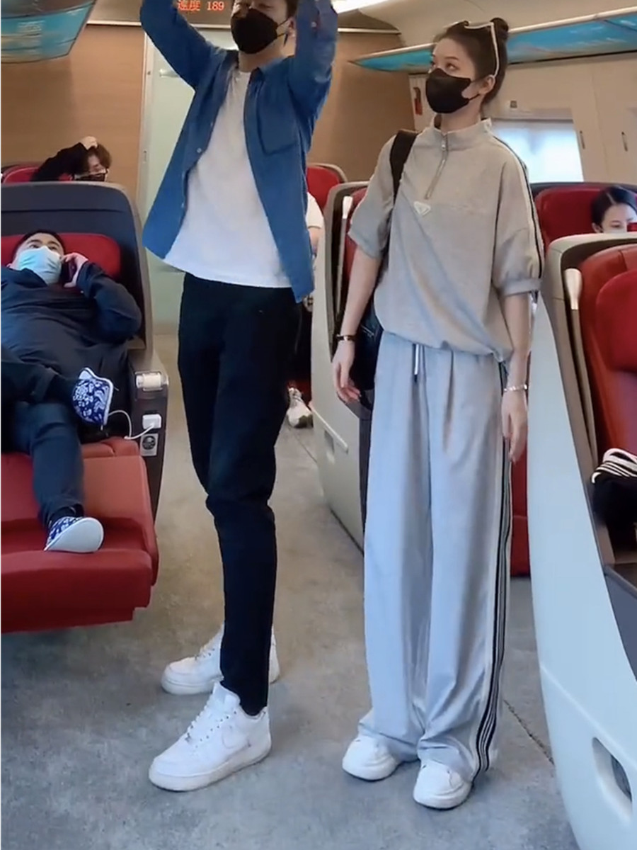 european station brand leisure sports suit women's summer younger fashion black half-sleeved top wide leg pants two-piece set