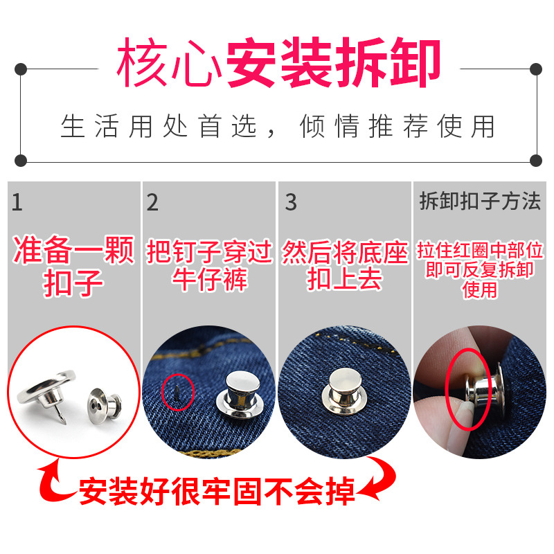 punch-free waist change small detachable pants change small tight button jeans pants nail-free waist button