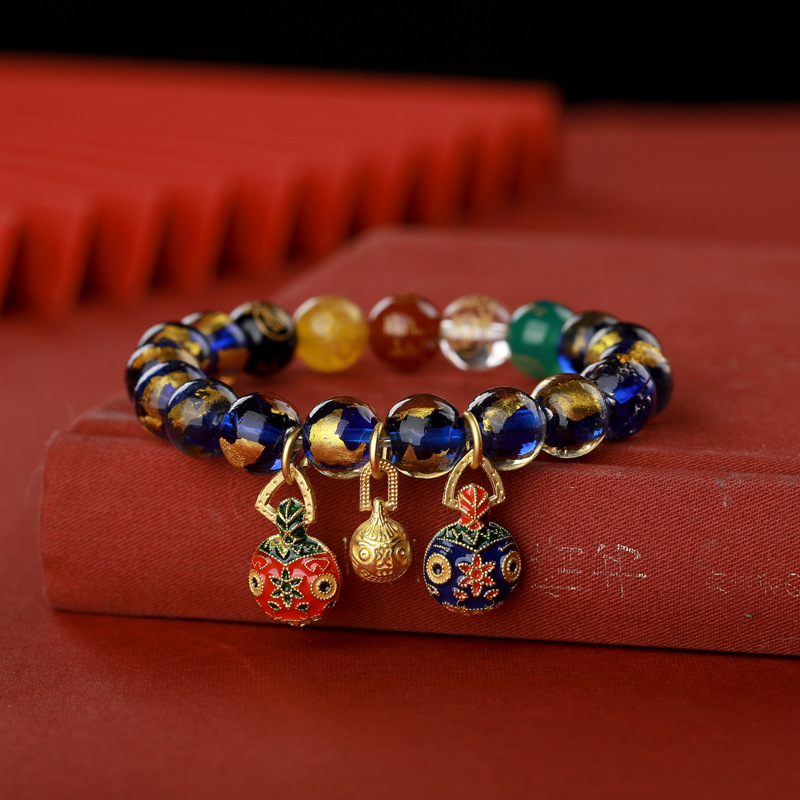 [five gods of wealth] gold foil blue glaze