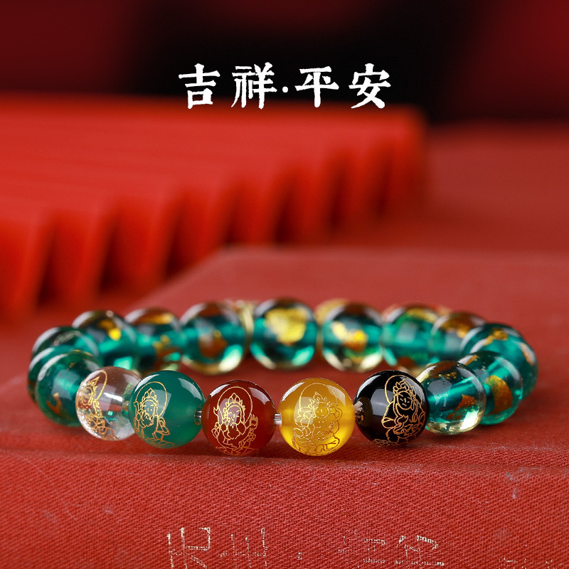 [five gods of wealth] gold foil green colored glaze