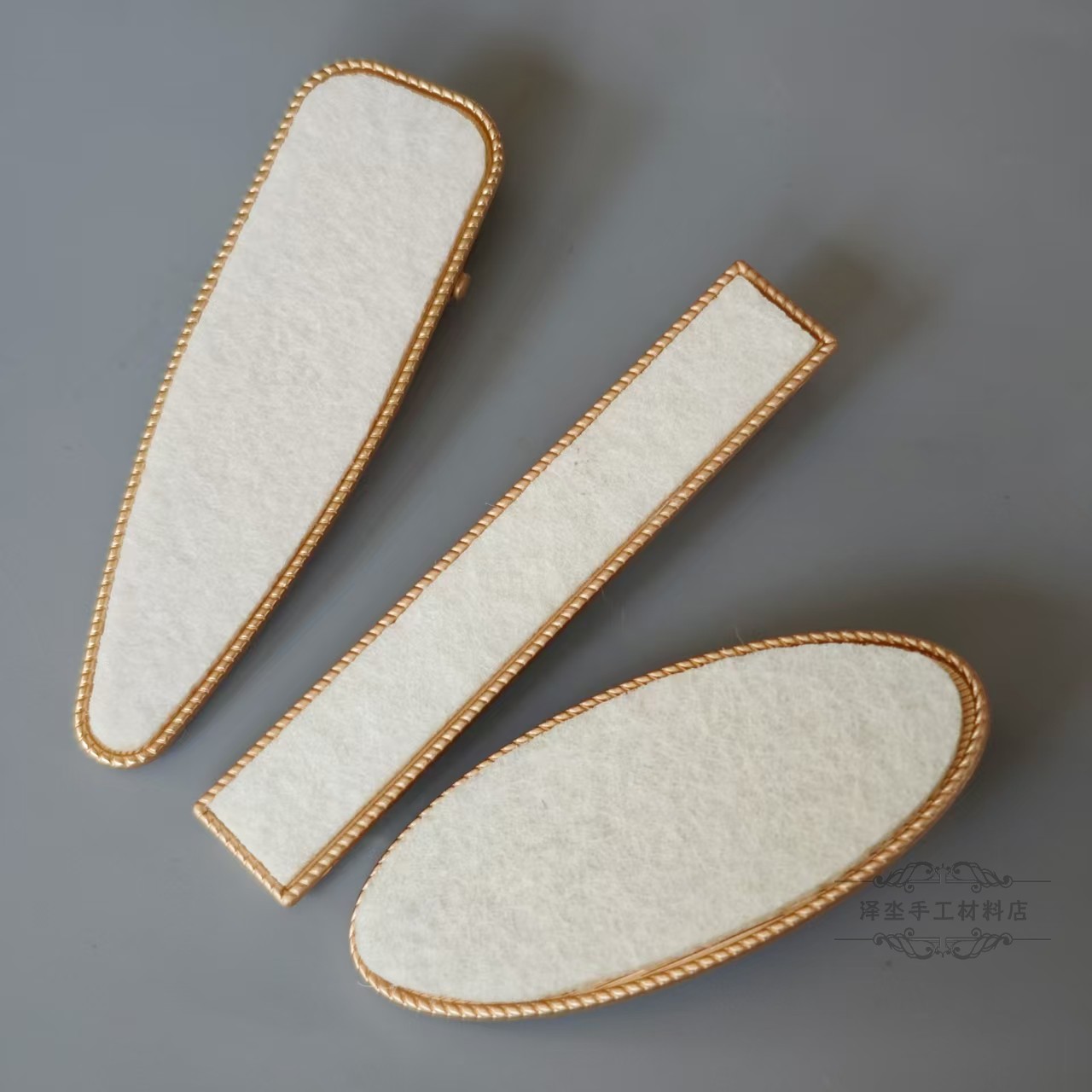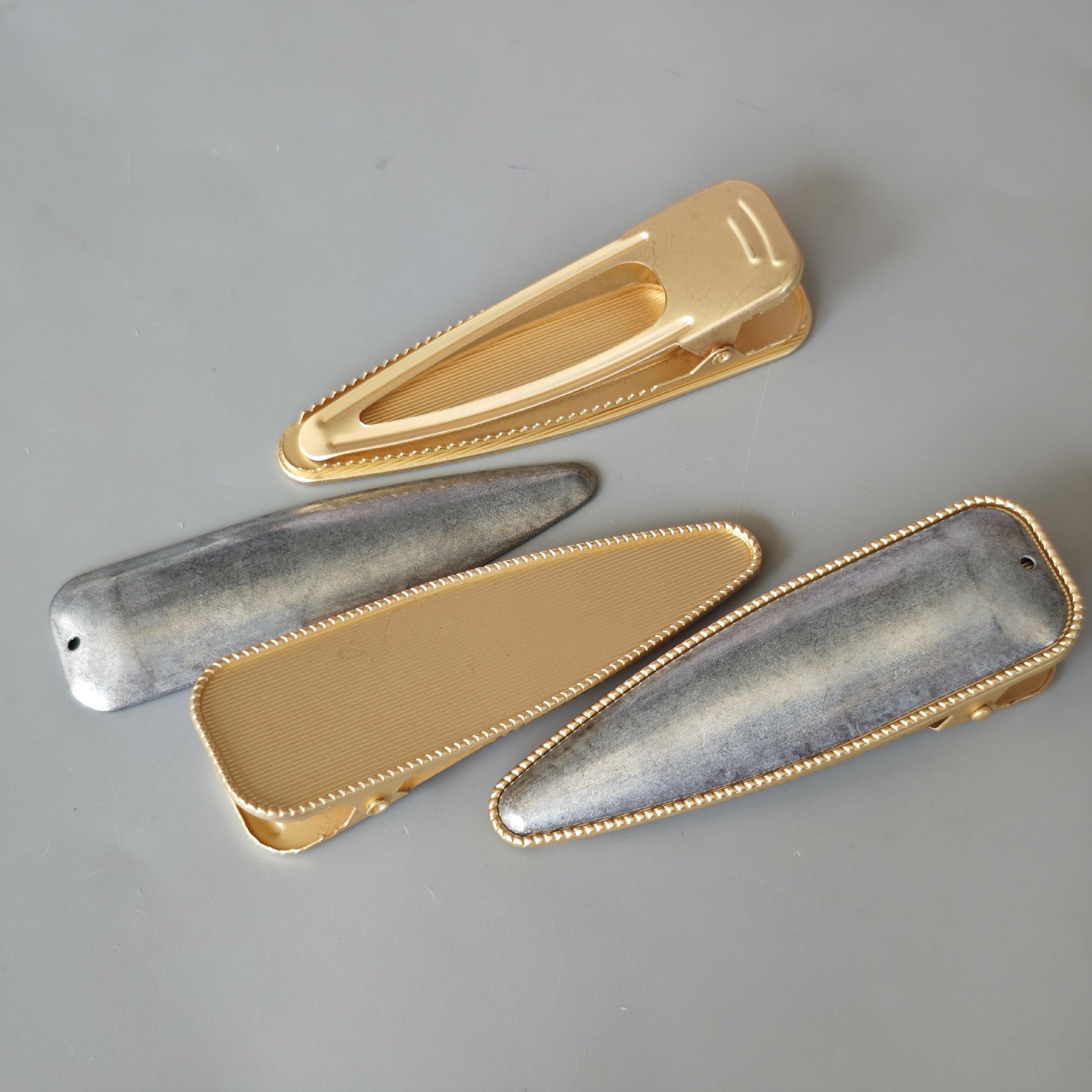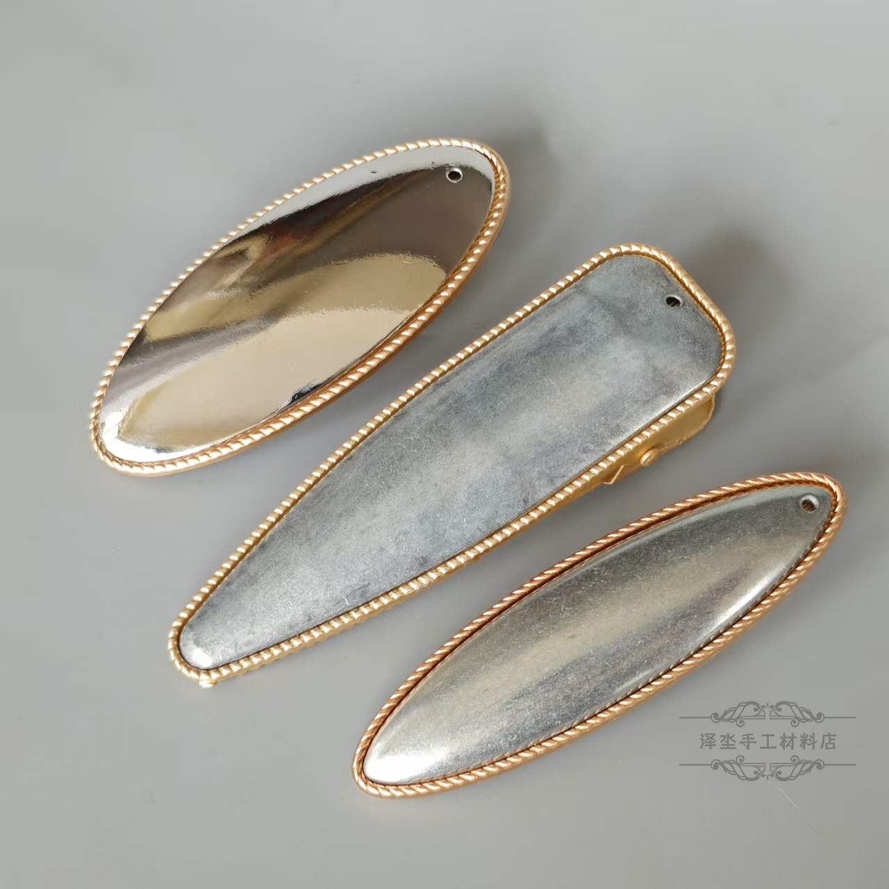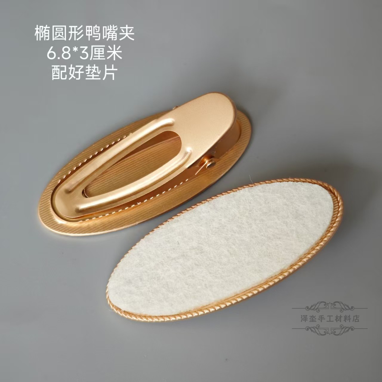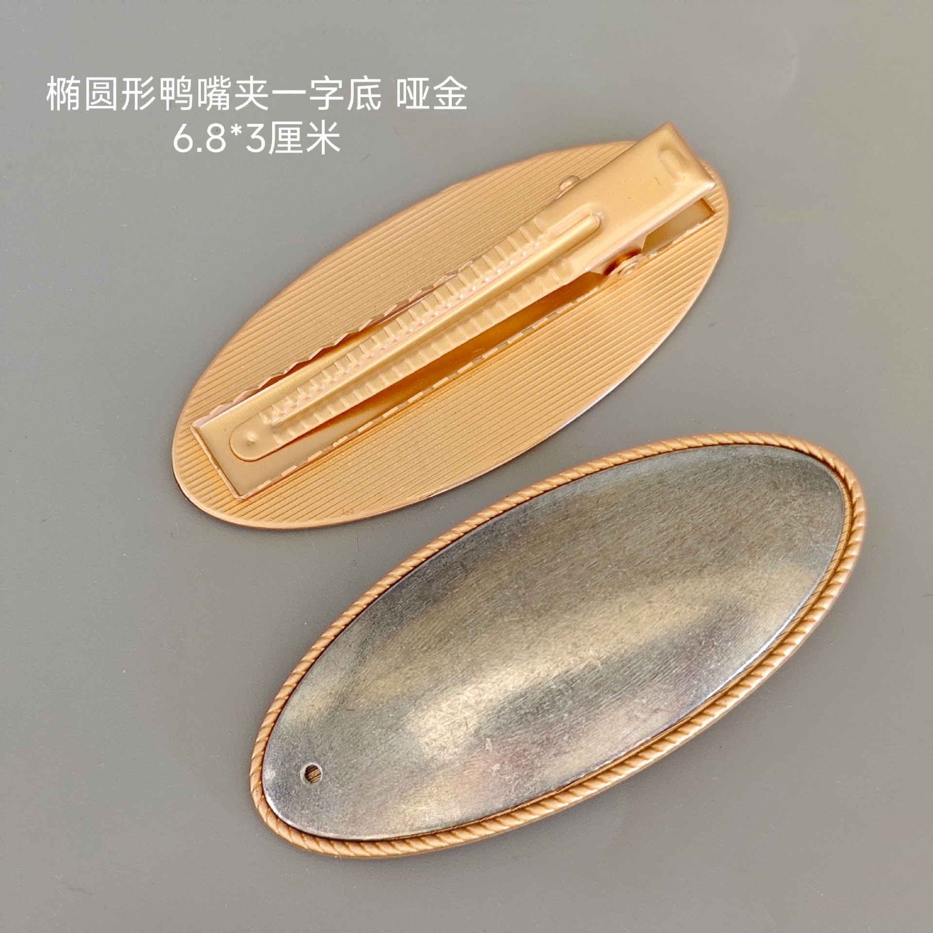 medium oval duckbill clip with buckle cover pieces of matte gold