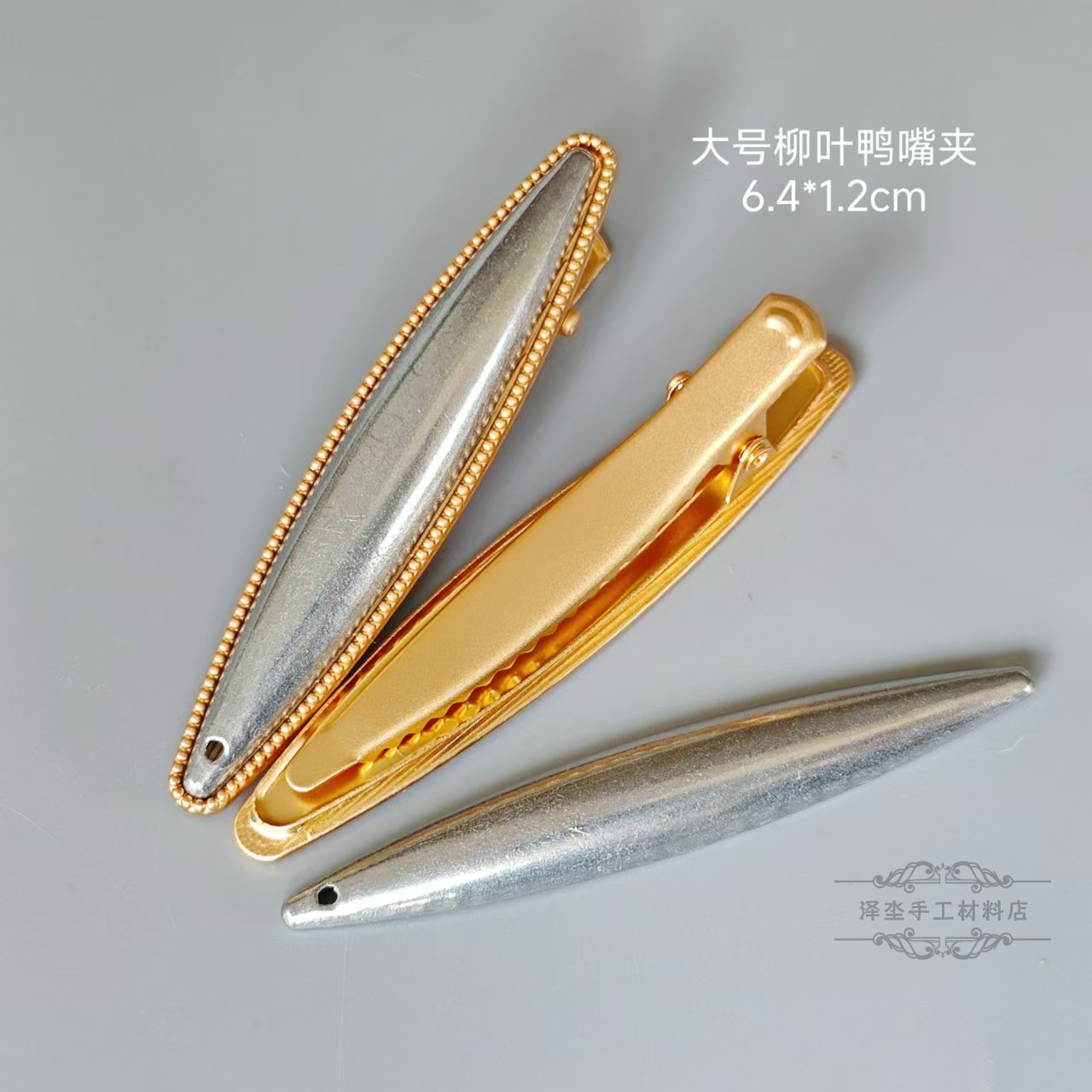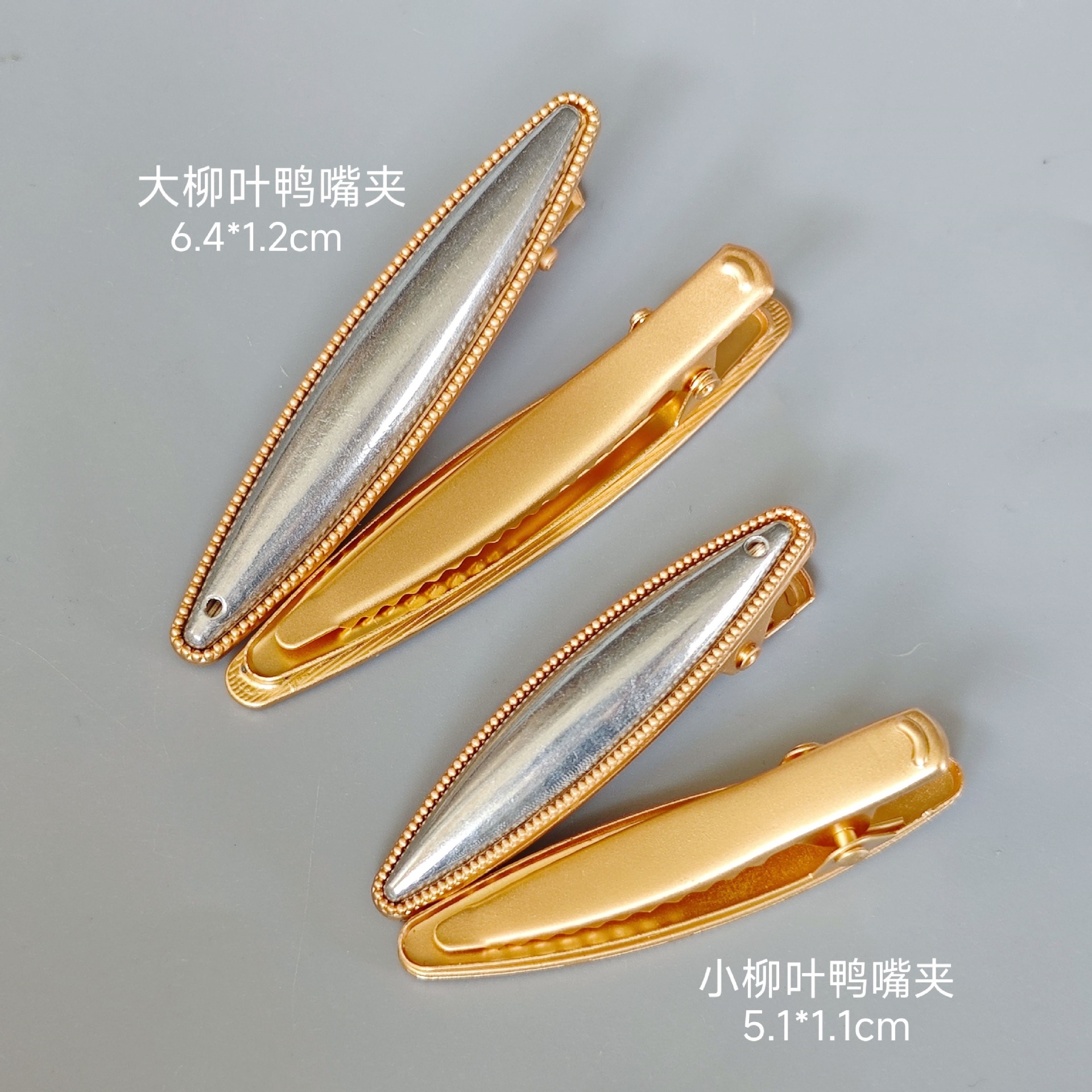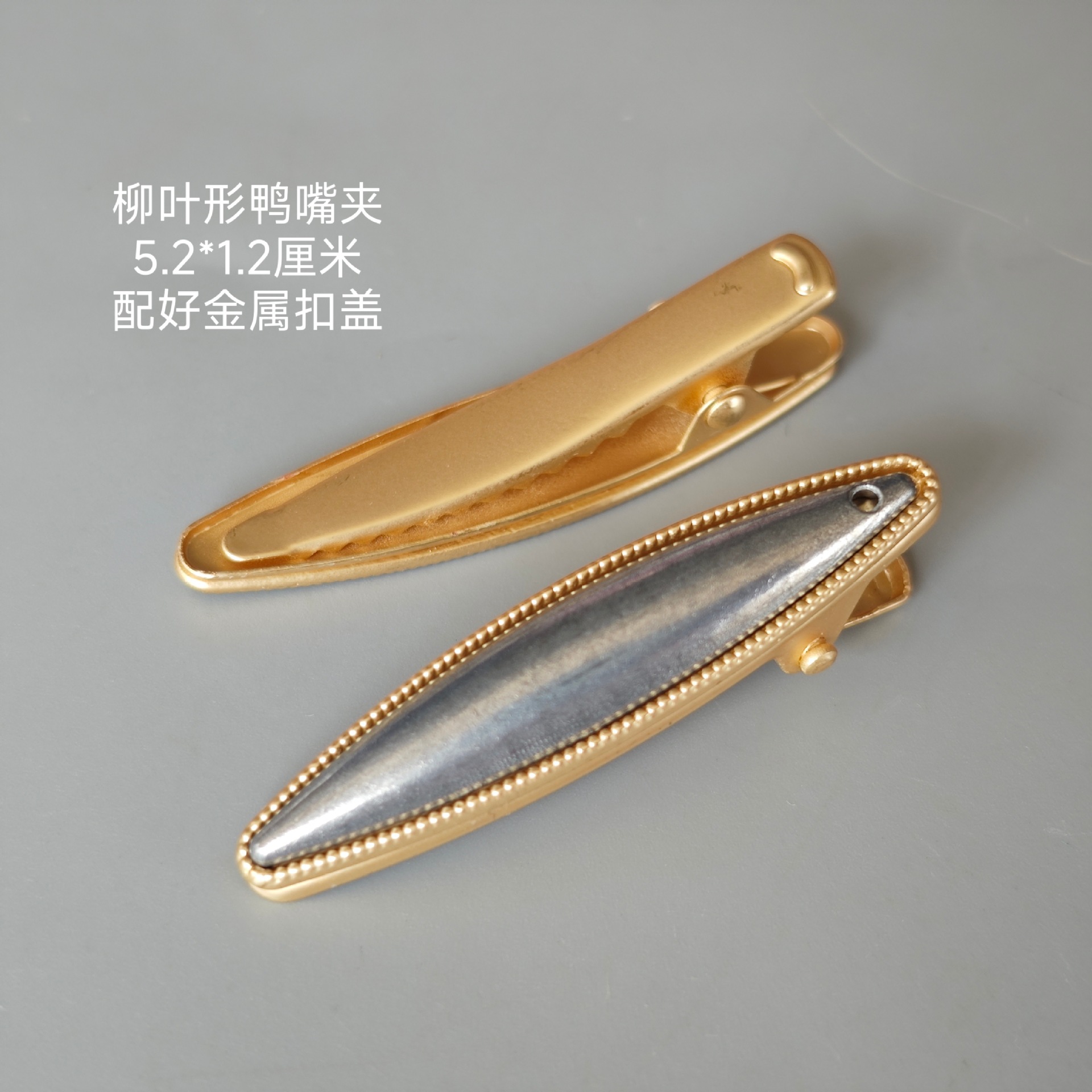 small size willow leaf-shaped duckbill clip with buckle cover pieces