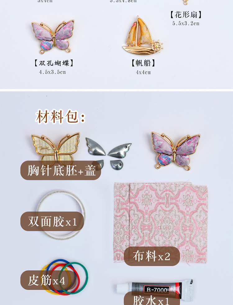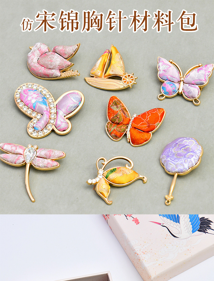 [half diamond butterfly] brooch imitation song dynasty brocade brooch material package