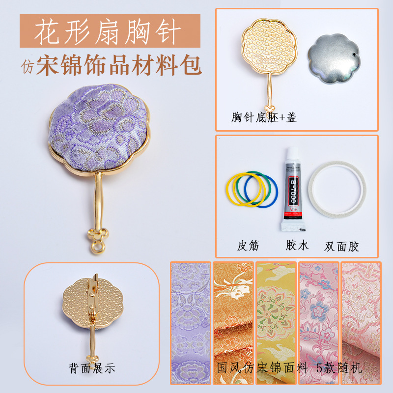 [flower fan] brooch imitation song dynasty brocade brooch material package
