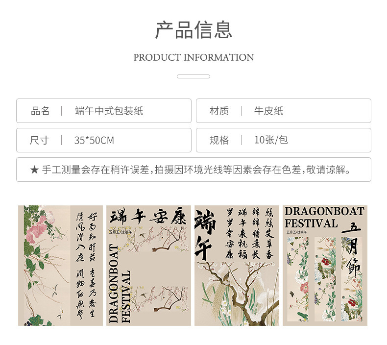 dragon boat festival chinese paper [may festival] 10 pieces 35 * 50cm; see options
