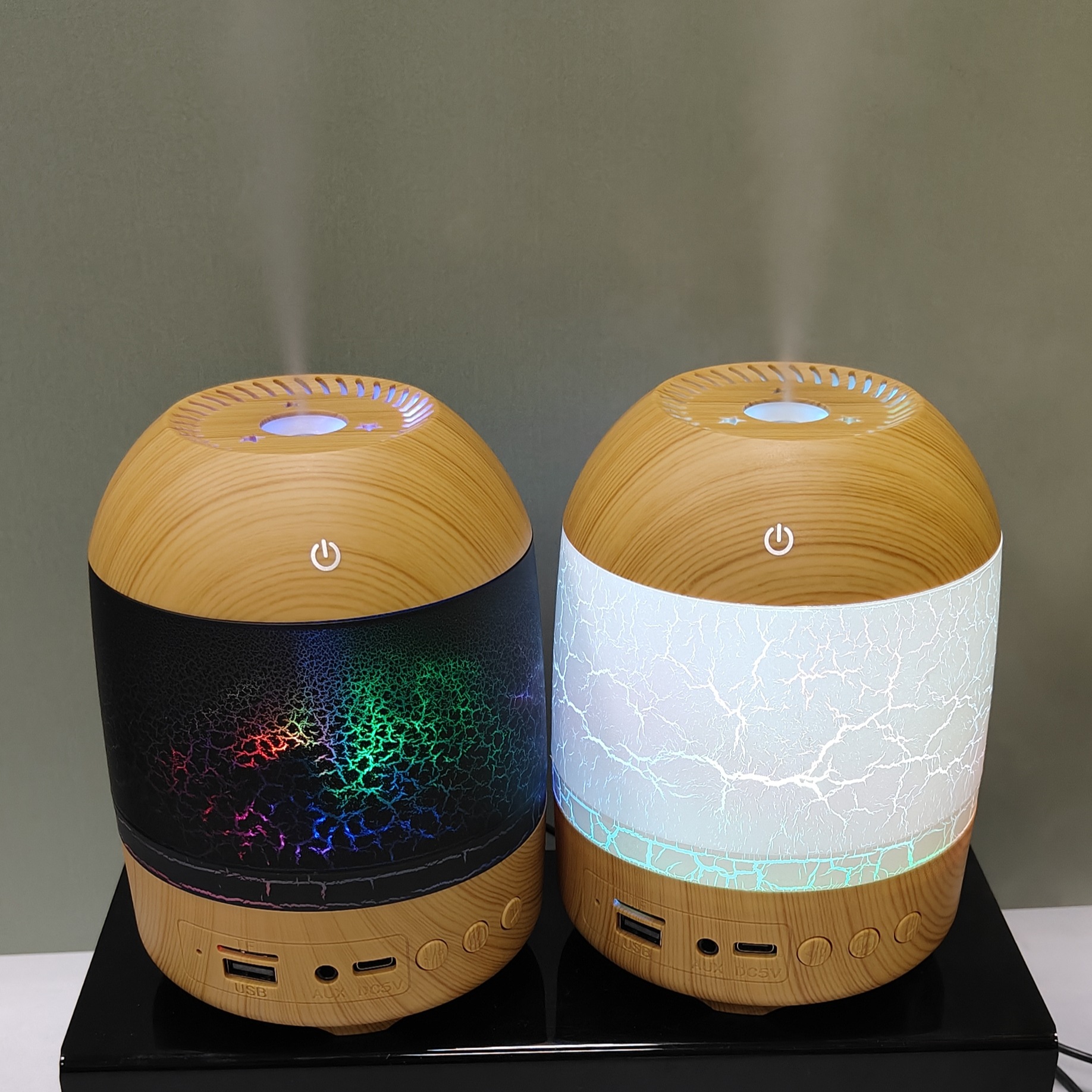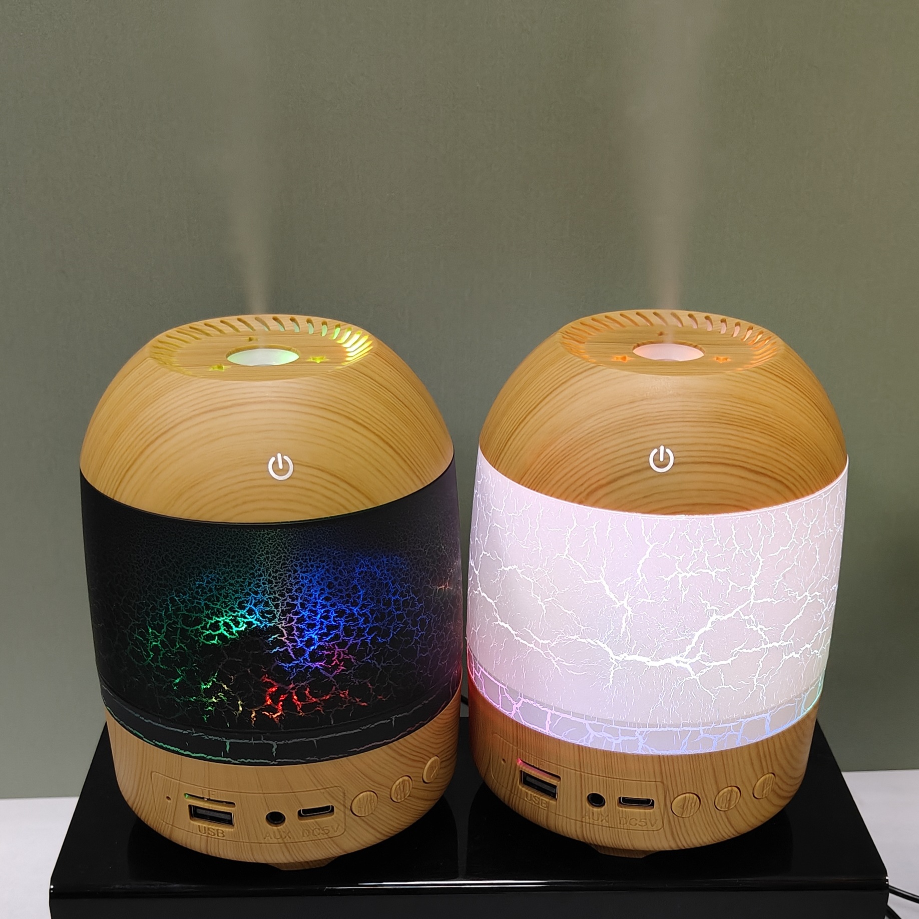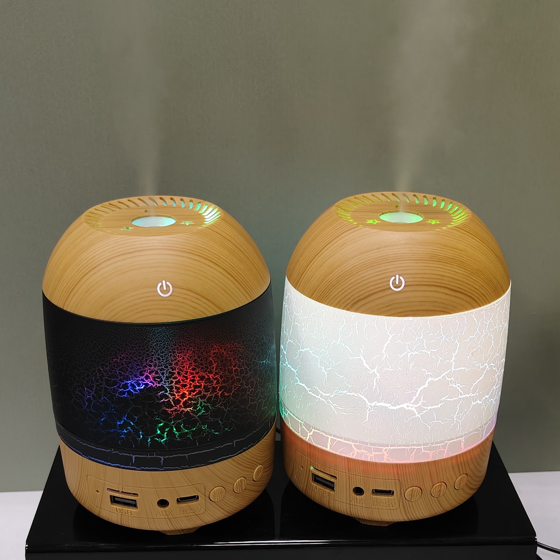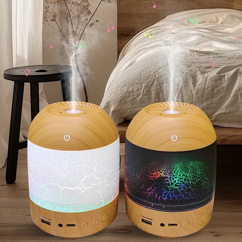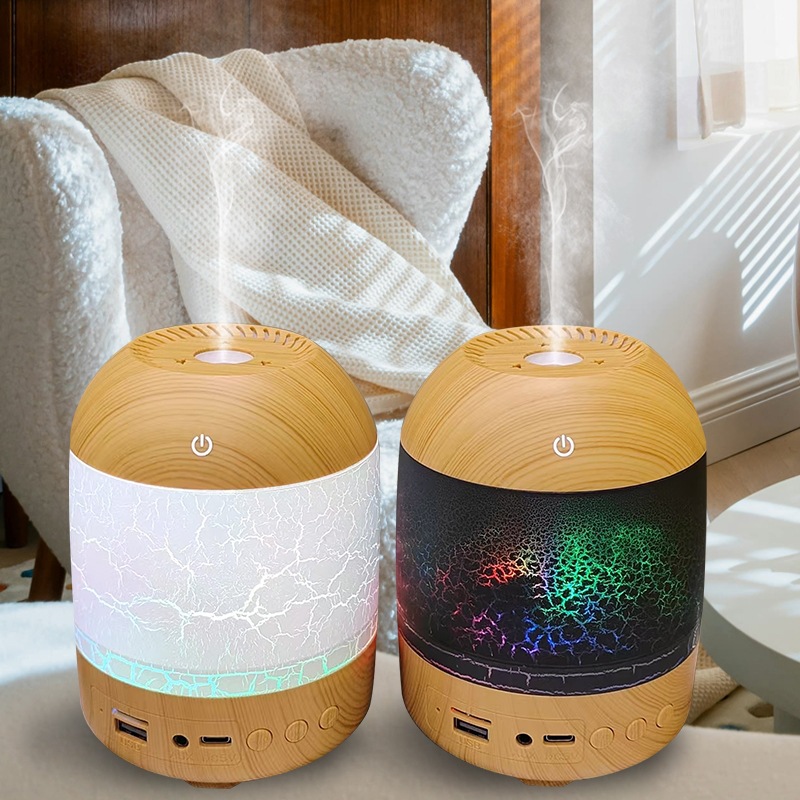 cross-border new arrival creative crack wood grain humidifier bluetooth audio dual-function humidifier aroma diffuser craft ornaments