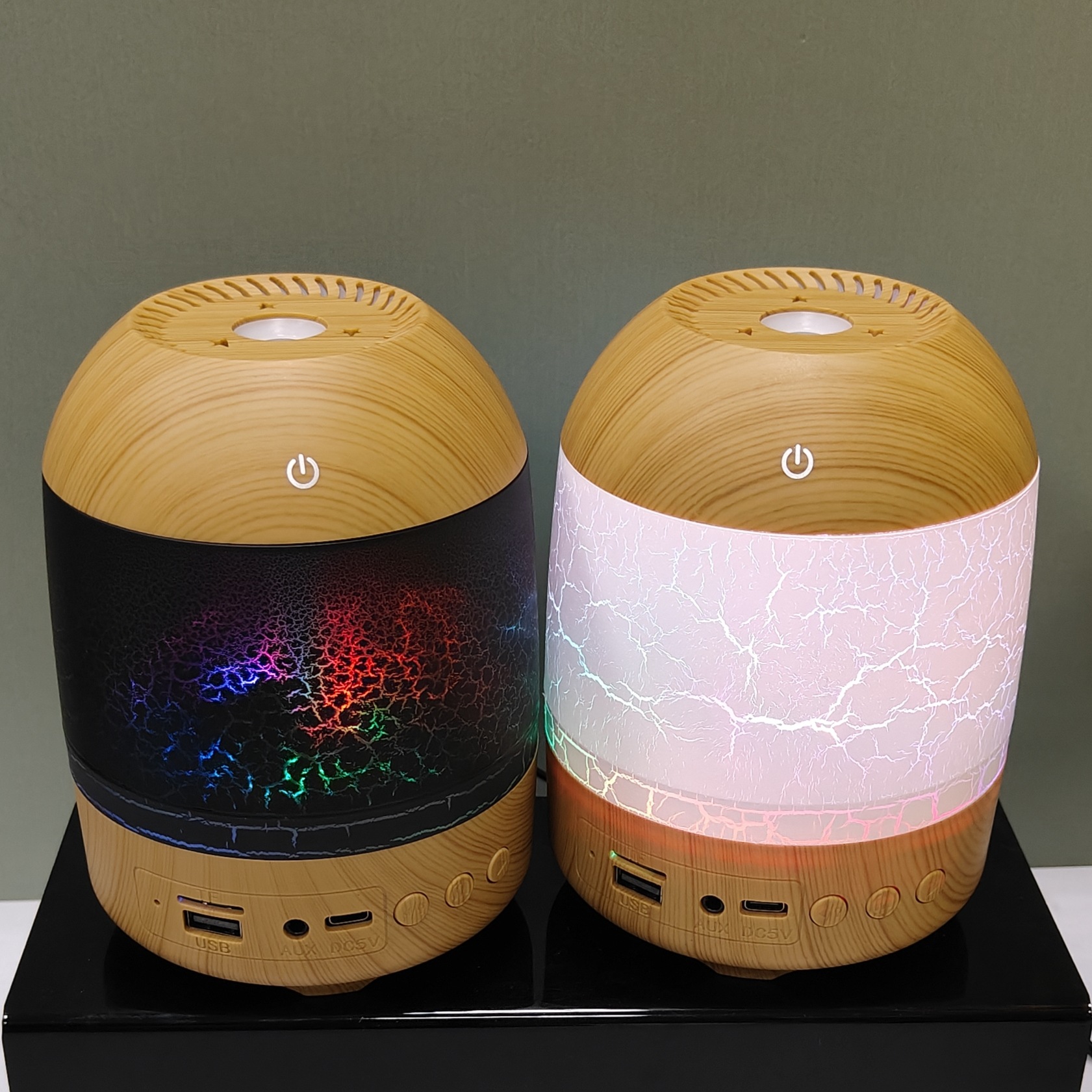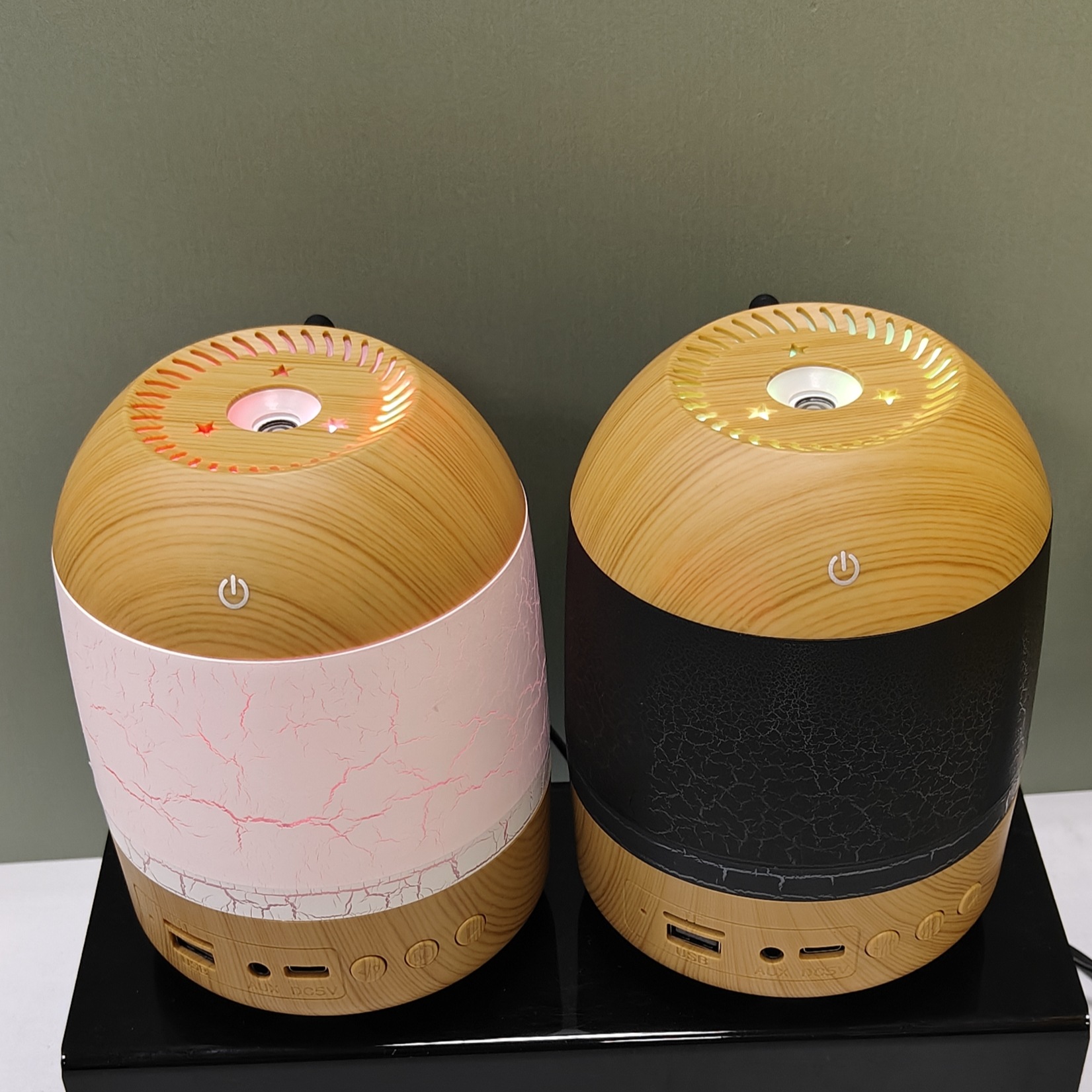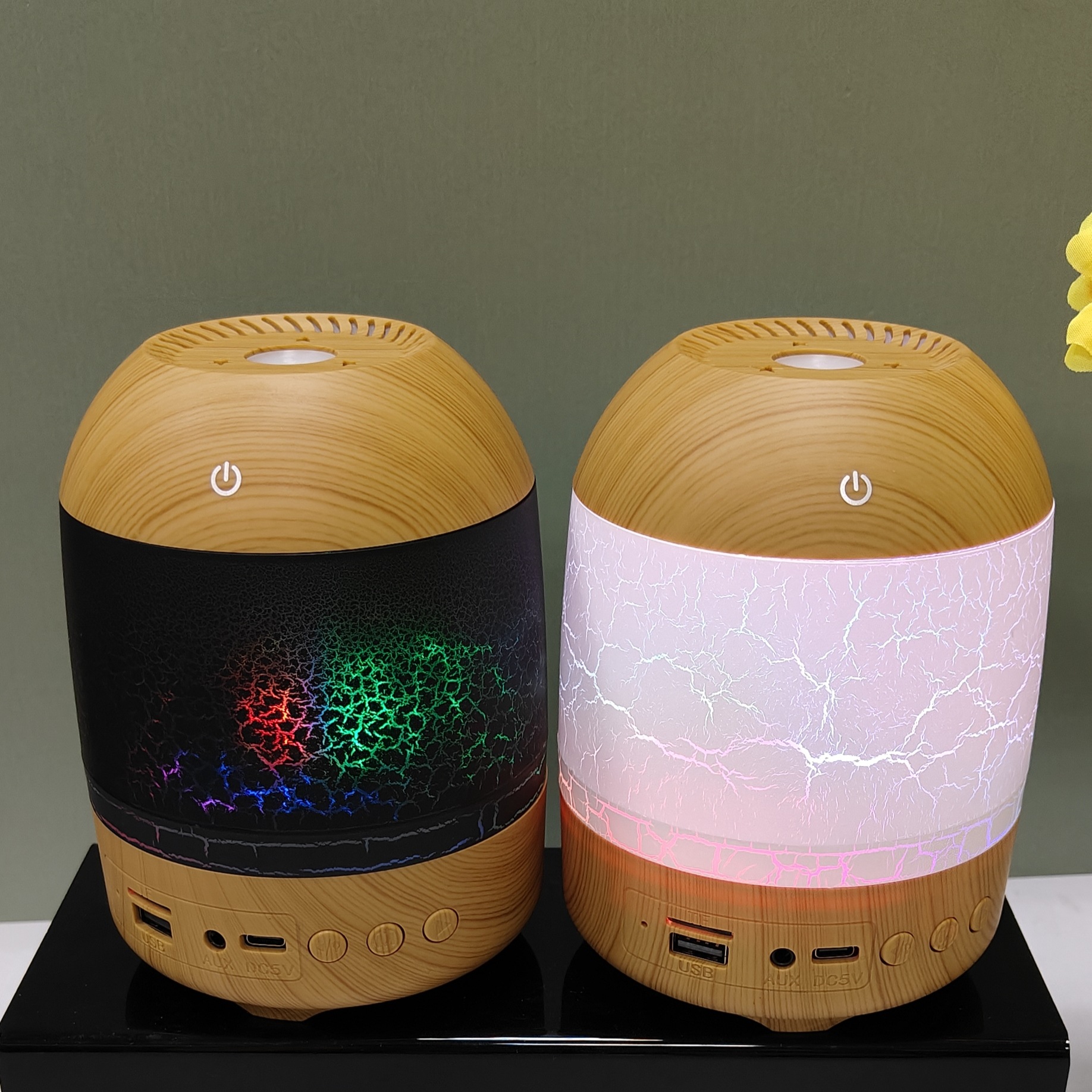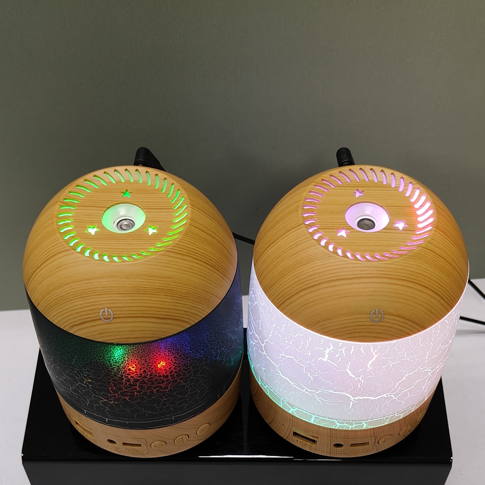 cross-border new arrival creative crack wood grain humidifier bluetooth audio dual-function humidifier aroma diffuser craft ornaments