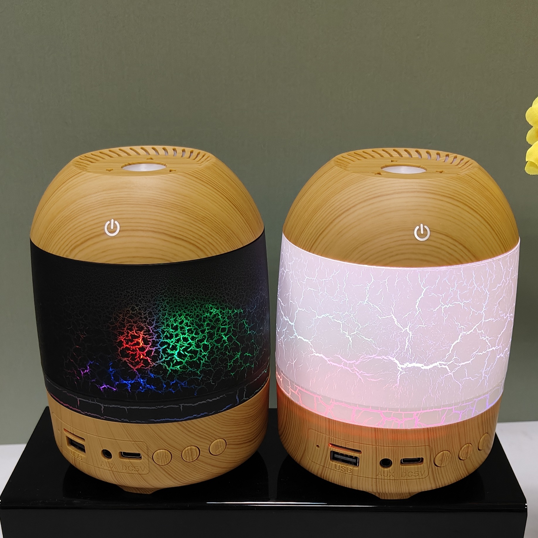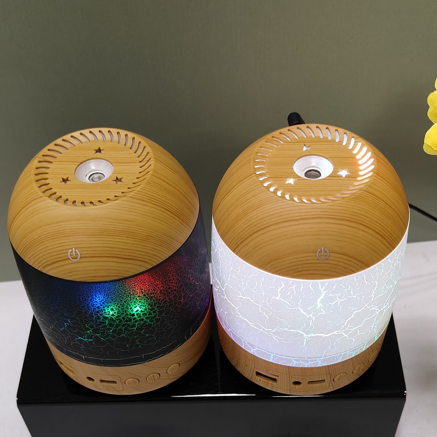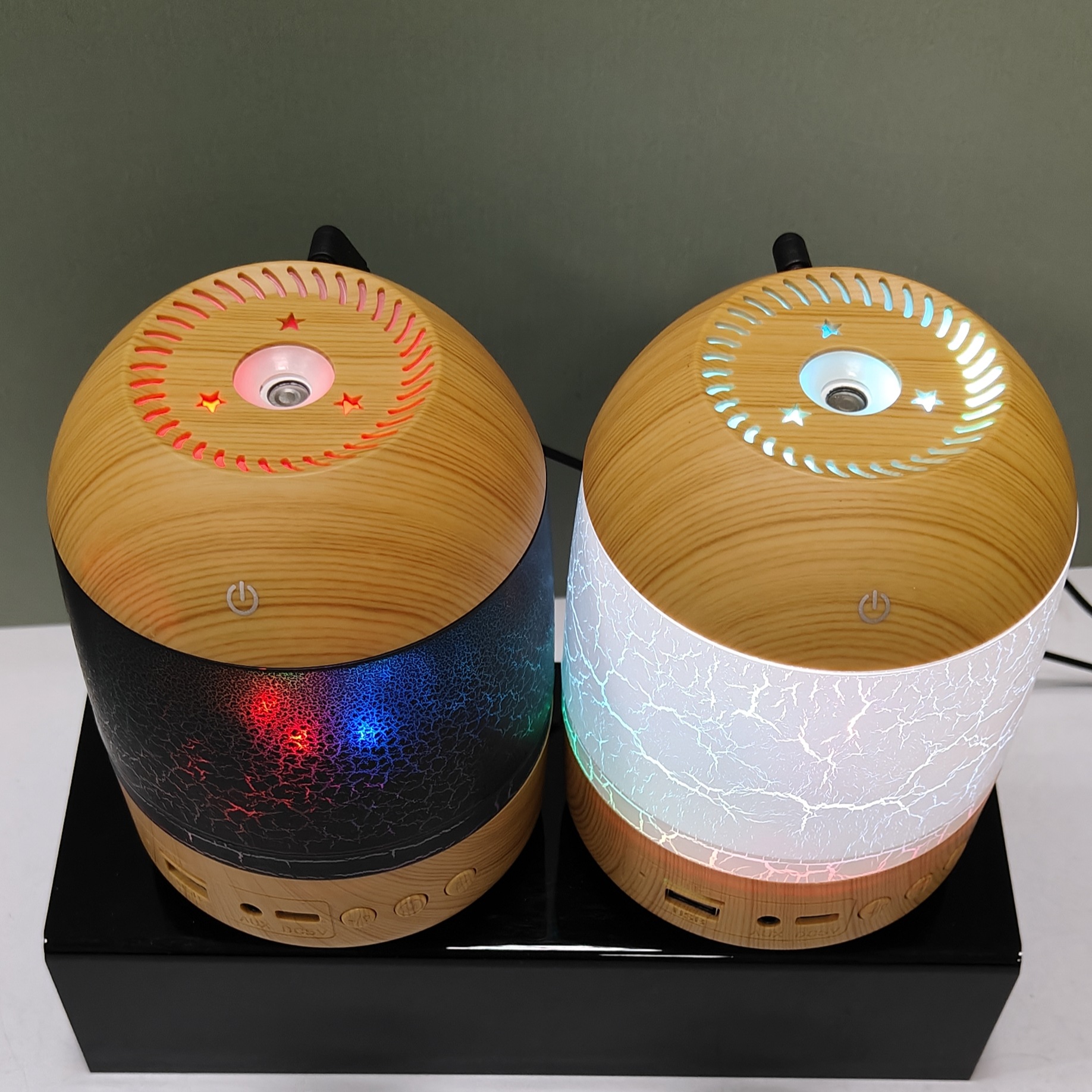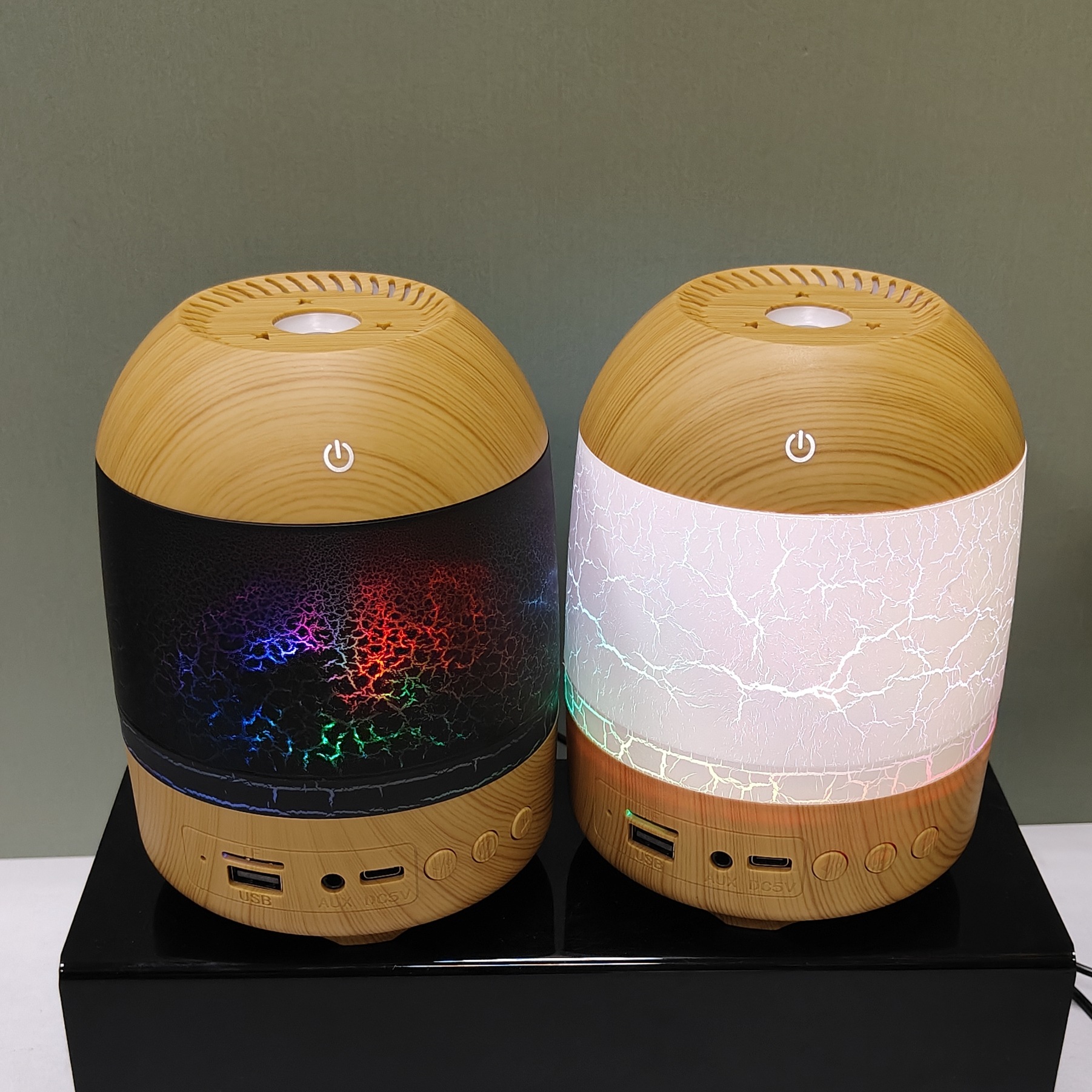 cross-border new arrival creative crack wood grain humidifier bluetooth audio dual-function humidifier aroma diffuser craft ornaments