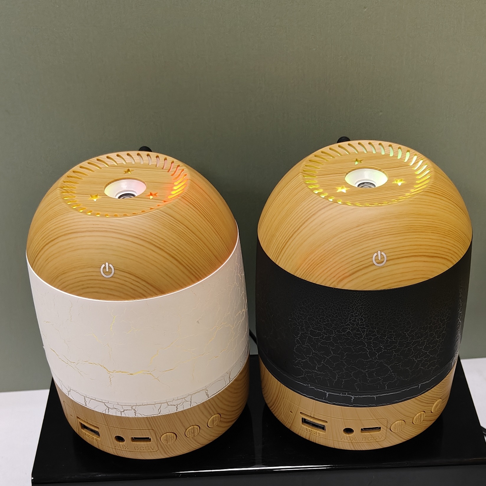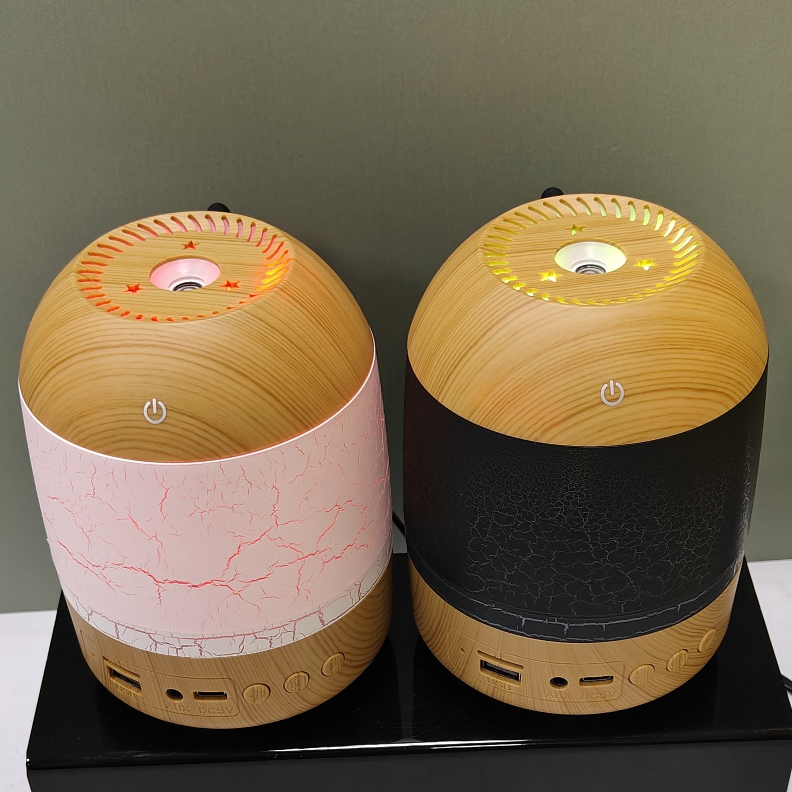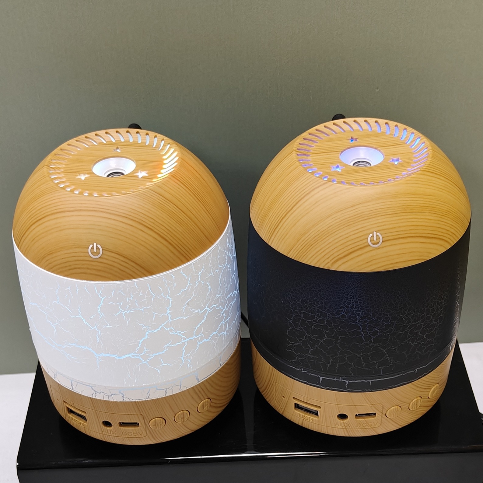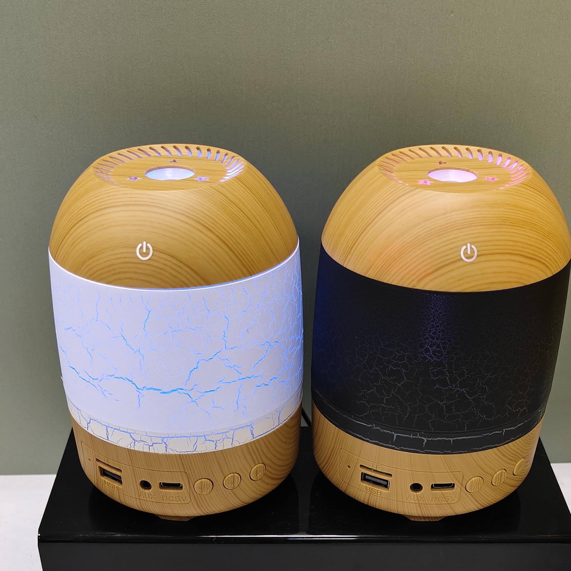 cross-border new arrival creative crack wood grain humidifier bluetooth audio dual-function humidifier aroma diffuser craft ornaments