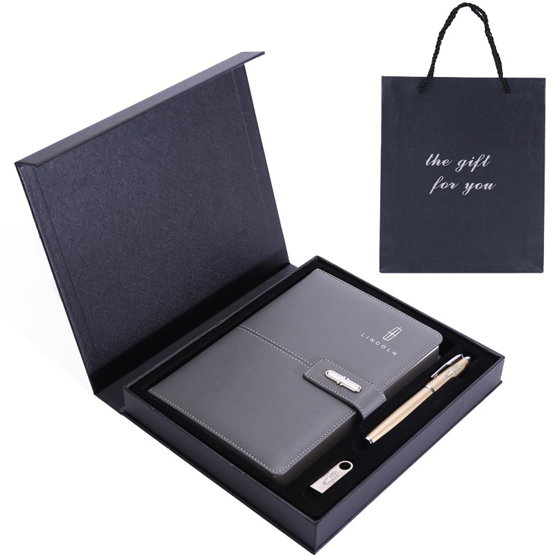 classic gray gift box with flip with pen and handbag with u disk