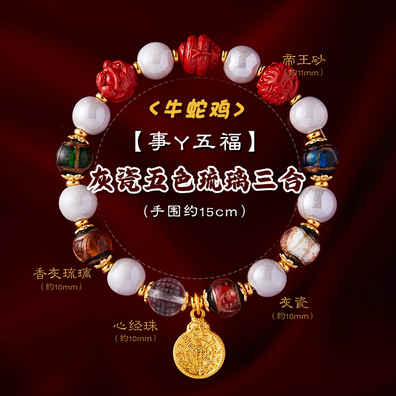 gray porcelain five-color gold foil glaze bracelet