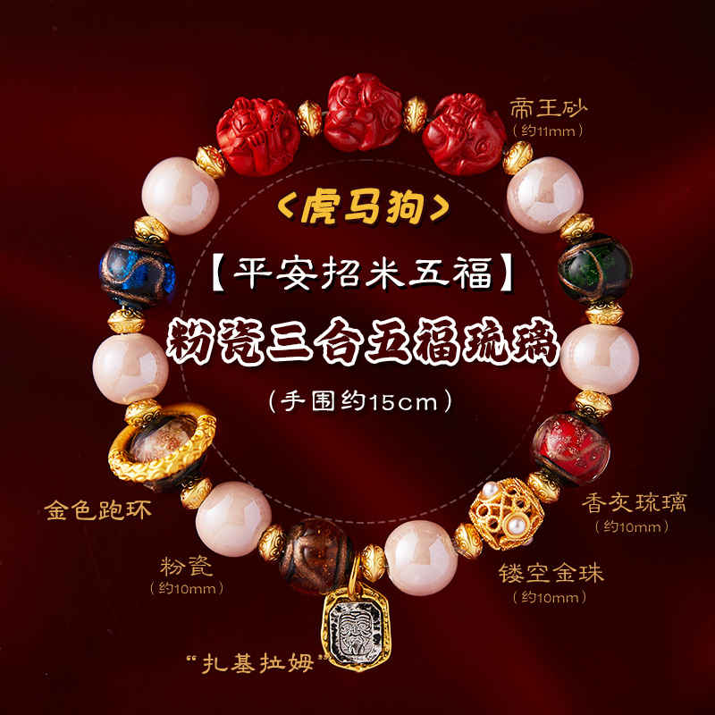 (tiger, horse, and dog) pink porcelain three-in-one five-fu colored glaze