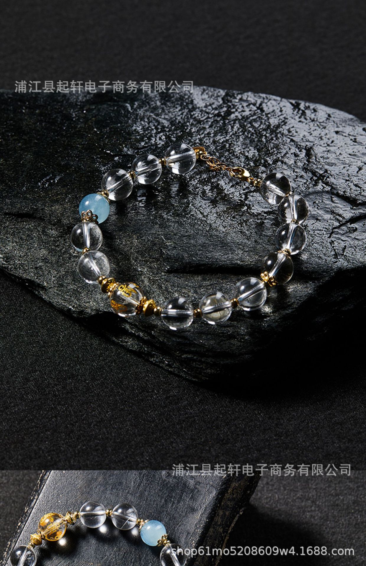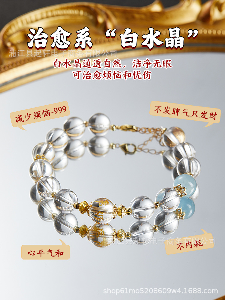 [aquamarine] bead diameter 10mm mood stable white crystal bracelet
