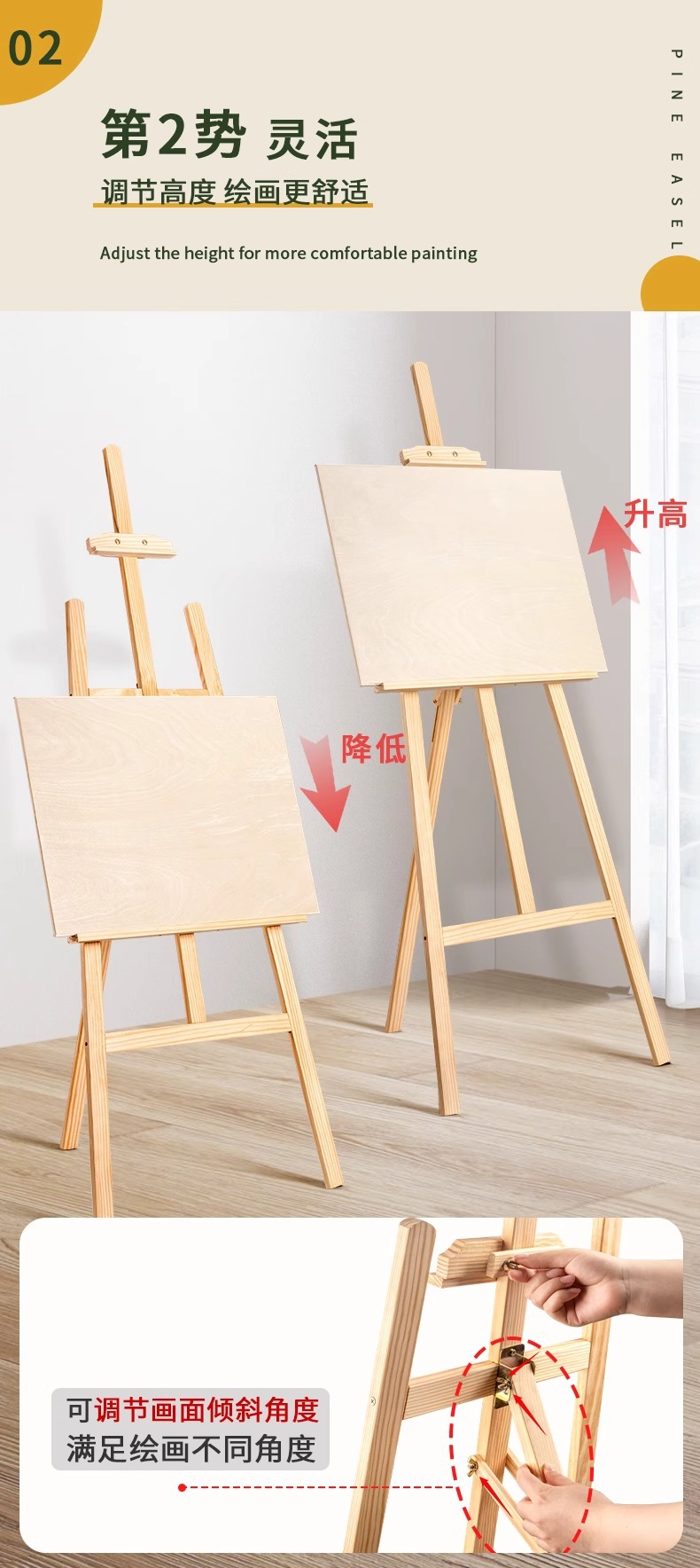 150 yellow pine easel upgrade-real fine polishing-smooth and comparable