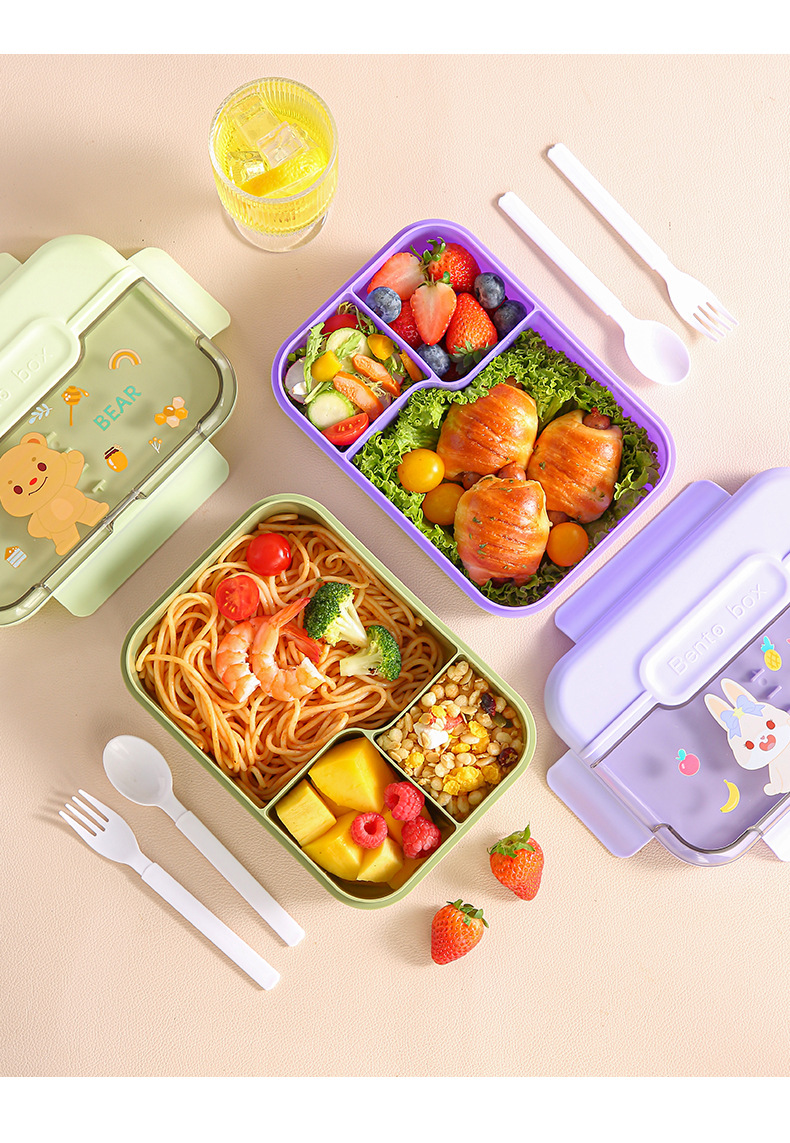cute cartoon elementary school student plastic lunch box sealed salad lunch box compartment lunch box microwaveable heating insulation