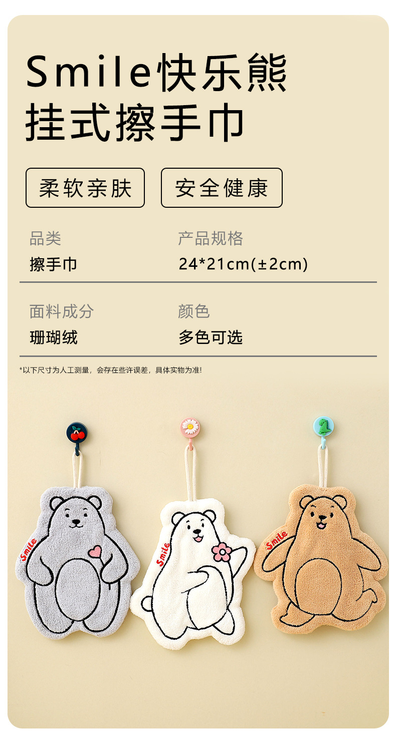 coral velvet cute cartoon smile happy bear hand towel kitchen absorbent hanging thickened cross-border supply