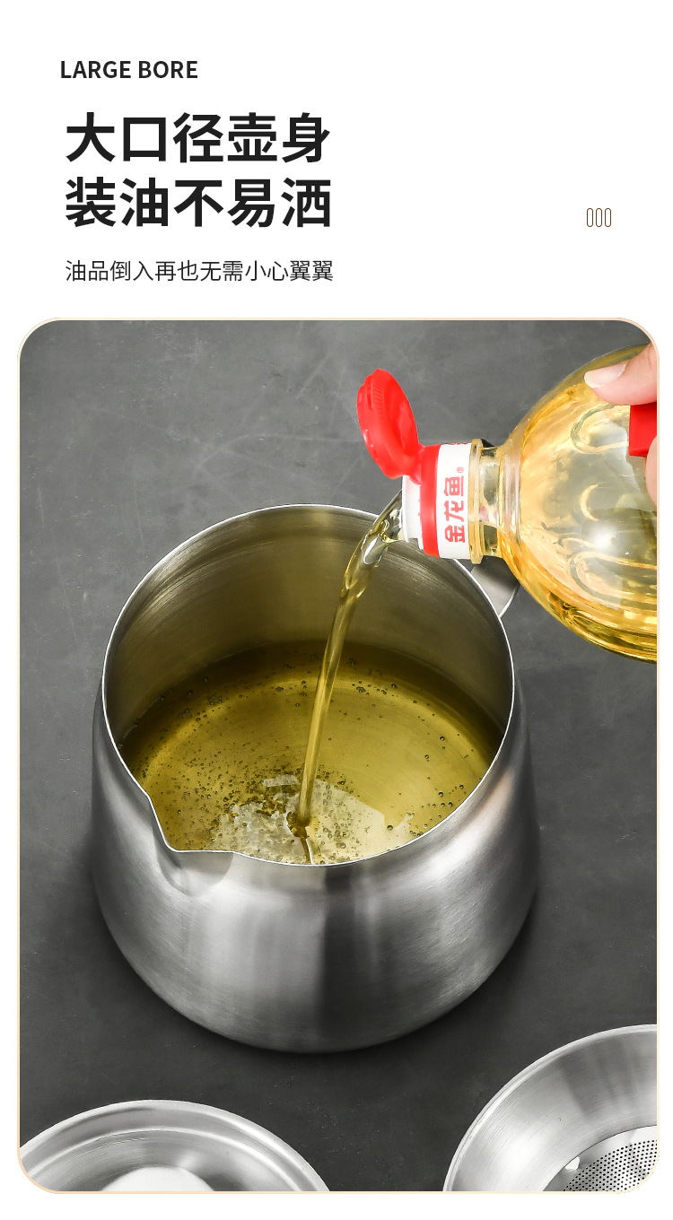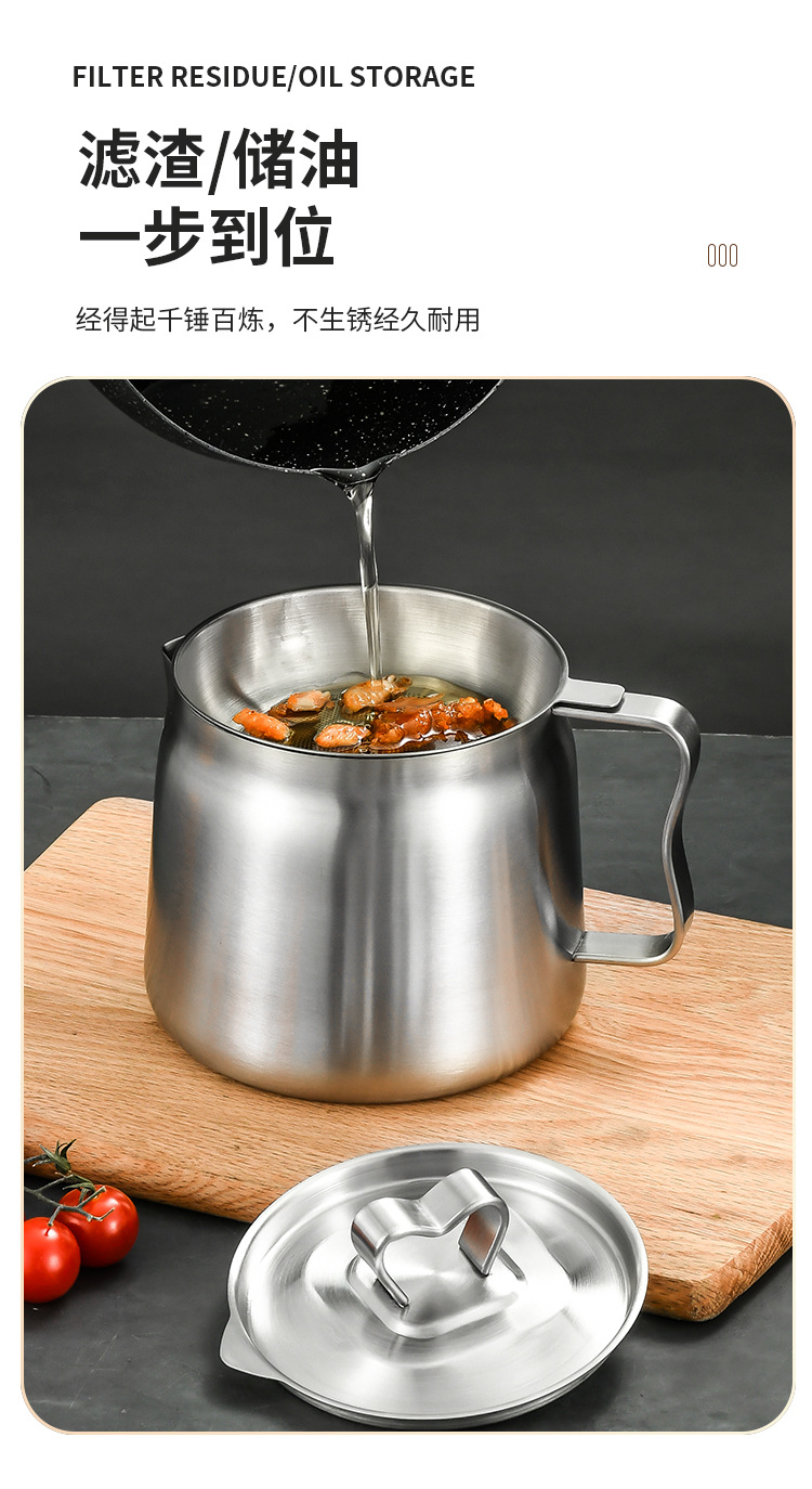 304 stainless steel oil draining pot large capacity oil filter residue kitchen household oil storage bottle oil return cup with lid oiler