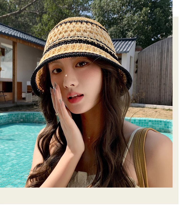 color [beige top + black hat edge]]