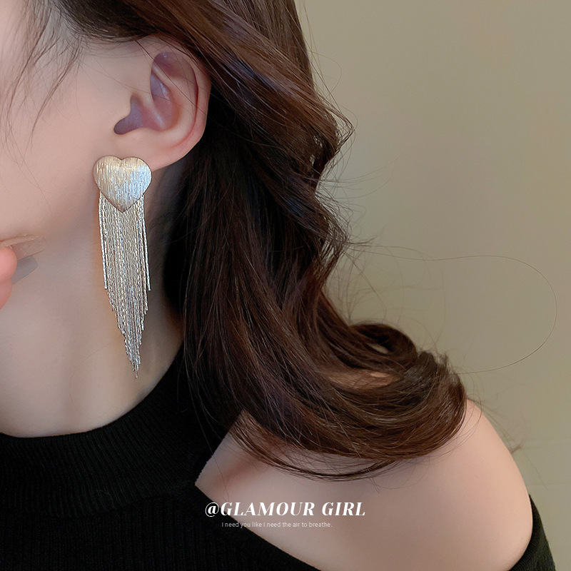 023553 -- silver water drop tassel ear studs