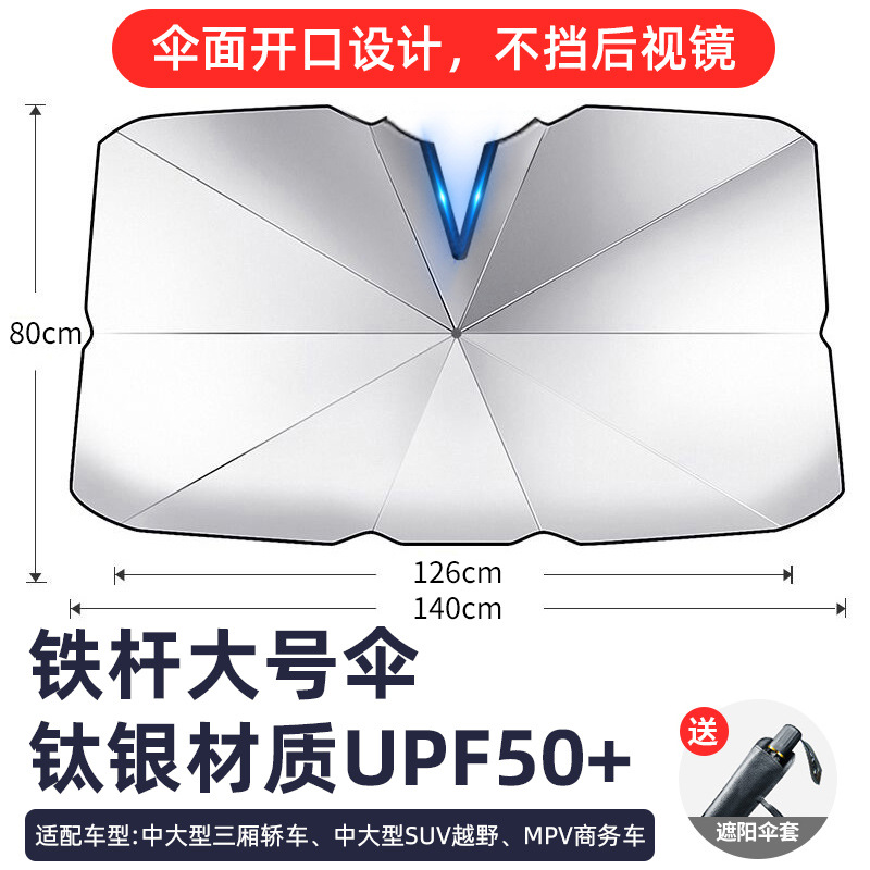 curved rod open sunshade-titanium silver small size