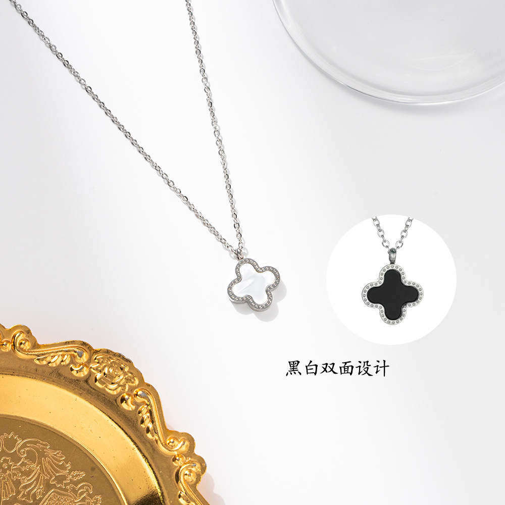 rose gold black and white double-sided four-leaf clover