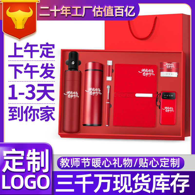 red-long control cup + umbrella four buckle books + round pen + temperature sleeve
